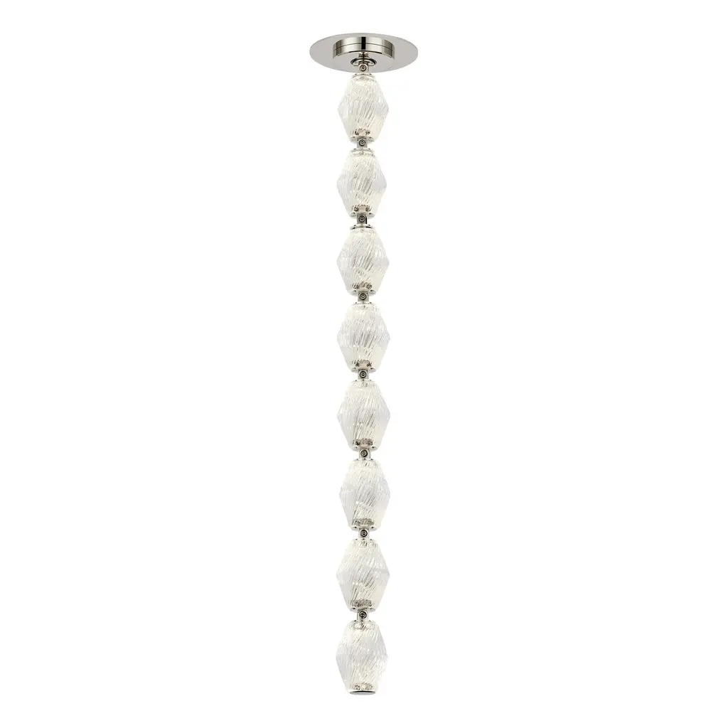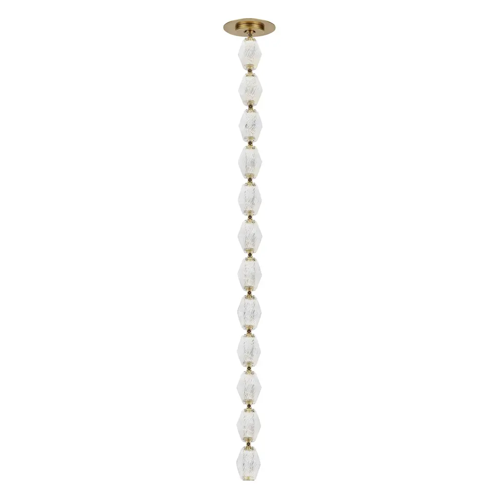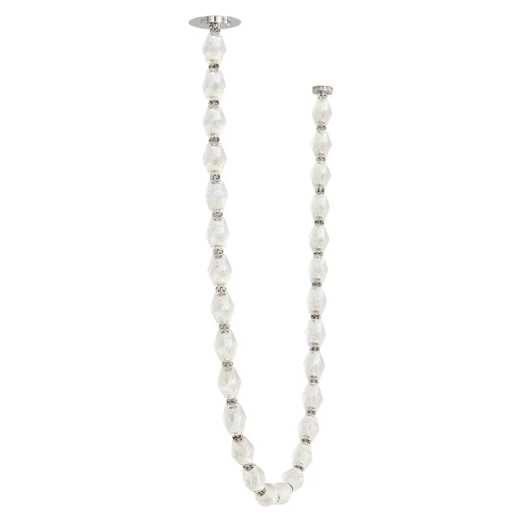 The Sean Lavin Collier Pendant Chandelier exudes luxury and sophistication. Solid faceted crystal fully encapsulates integrated LED modules interlocked by solid brass connectors. Available in multiple length strands for the ultimate in customization. Creates an incredible light sculpture with stunning illumination. The Collier features solid faceted crystal manufactured in the Czech Republic. The natural brass connectors are custom engineered to support the crystal and add additional beauty to the piece. Available with remote or surface mounted driver options. Predetermined length options allow for easy ordering with virtually unlimited versatility. Features