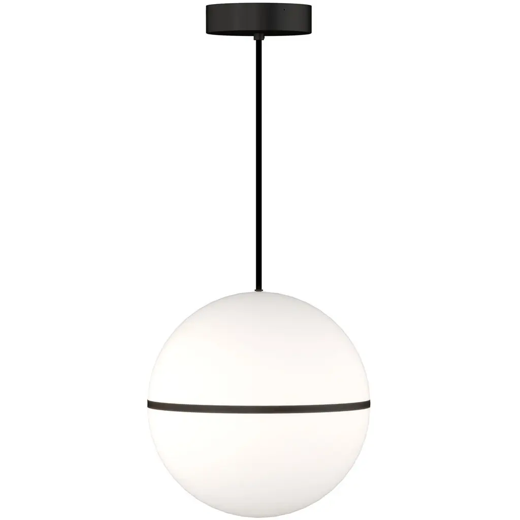 Inspired by mid-century design, the Hanea Grande Pendant by Sean Lavin celebrates the popularity of spherical geometry with an acrylic shade accented by a thin band, available in modern finish options. This pendant is beautiful as a standalone piece or clustered in multiples with the smaller scale Low-Voltage Pendant.