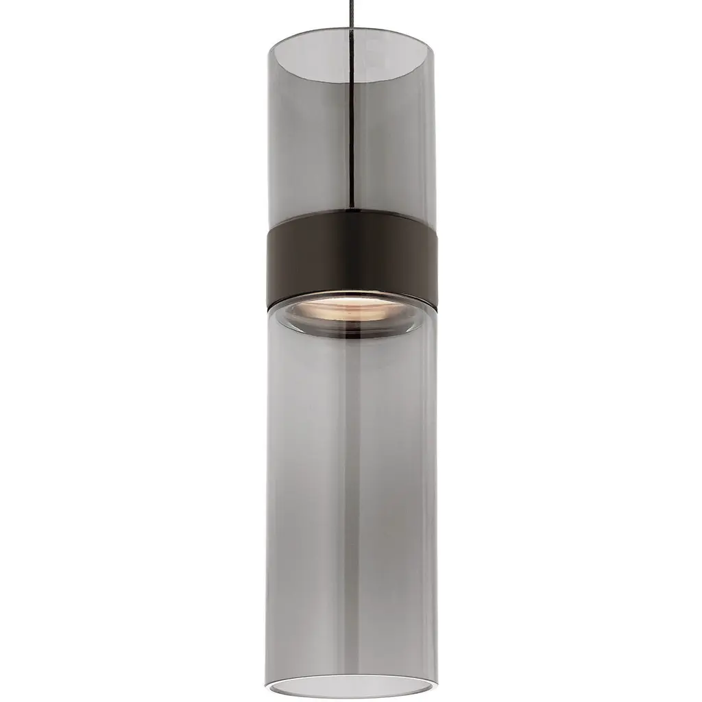 The Manette Grande pendant light by Sean Lavin is an elevated version of the classic cylinder pendant. With its simple cylindrical design and added sleek metal bands, the Manette Grande exudes style and simplicity. This hand-blown pendant is available in multiple color options and hardware finishes along with your choice of energy efficient LED lamps. Due to its larger size, the Manette Grande is ideal for kitchen island task lighting, dining room lighting and home office lighting applications. LED light sources fire simultaneously up and down to evenly illuminate the glass while contributing both direct and indirect illumination.