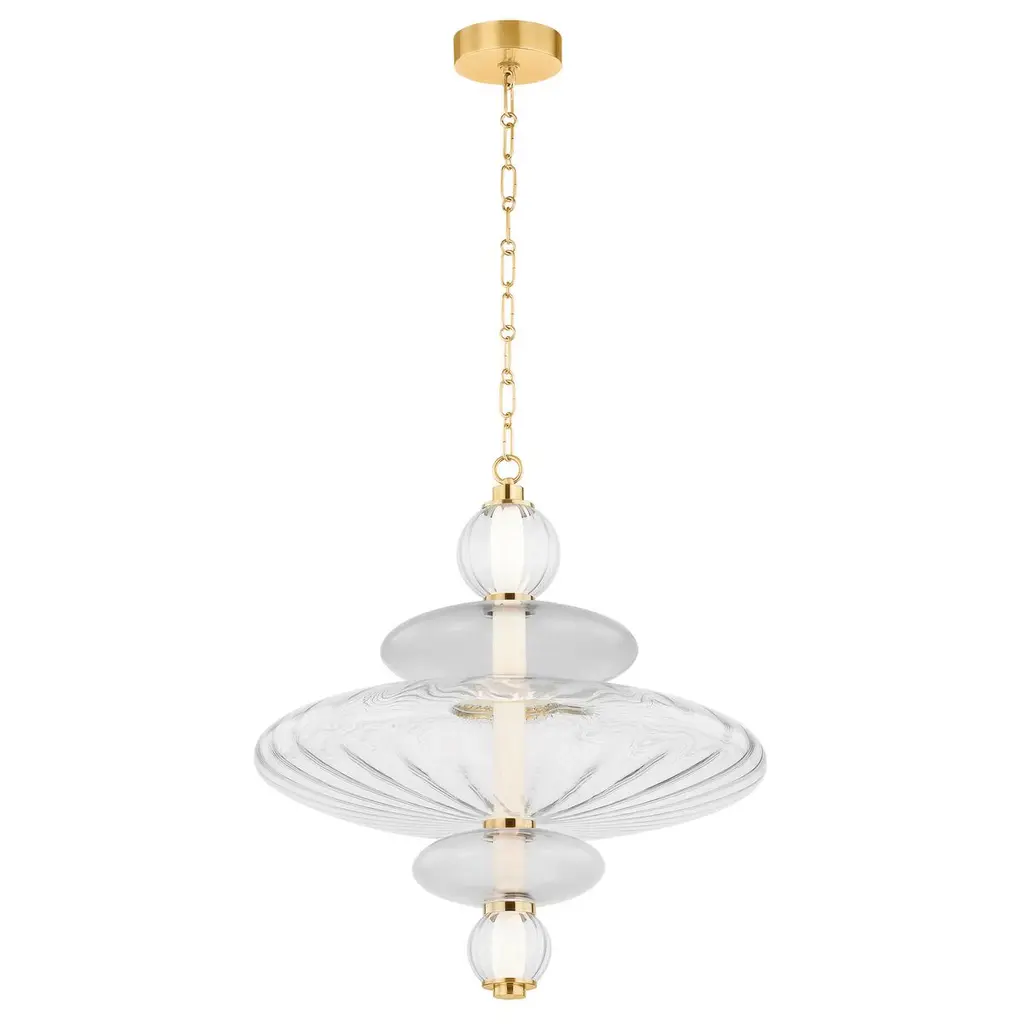 The Mellita six light indoor pendant in satin brass enhances the beauty of your home with ample light and style to match today's trends. Full of structure and movement the Mellita chandelier gracefully positions multiple tiers of oversized etched glass disks.