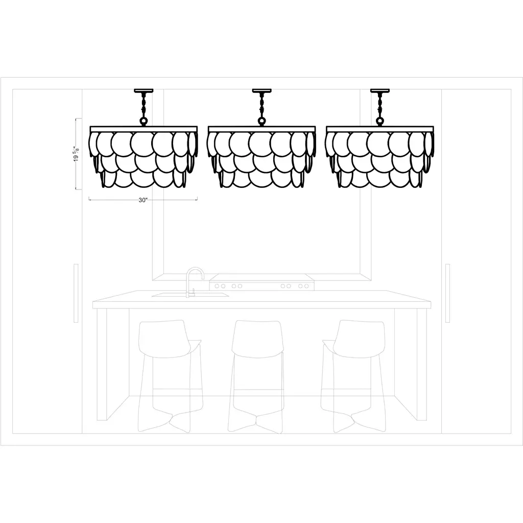 The Mellita eight light indoor pendant in Satin Brass is full of structure and movement. The Mellita chandelier gracefully positions multiple tiers of oversized etched glass disks. Named for a species of sand dollar found on the East Coast of North America.