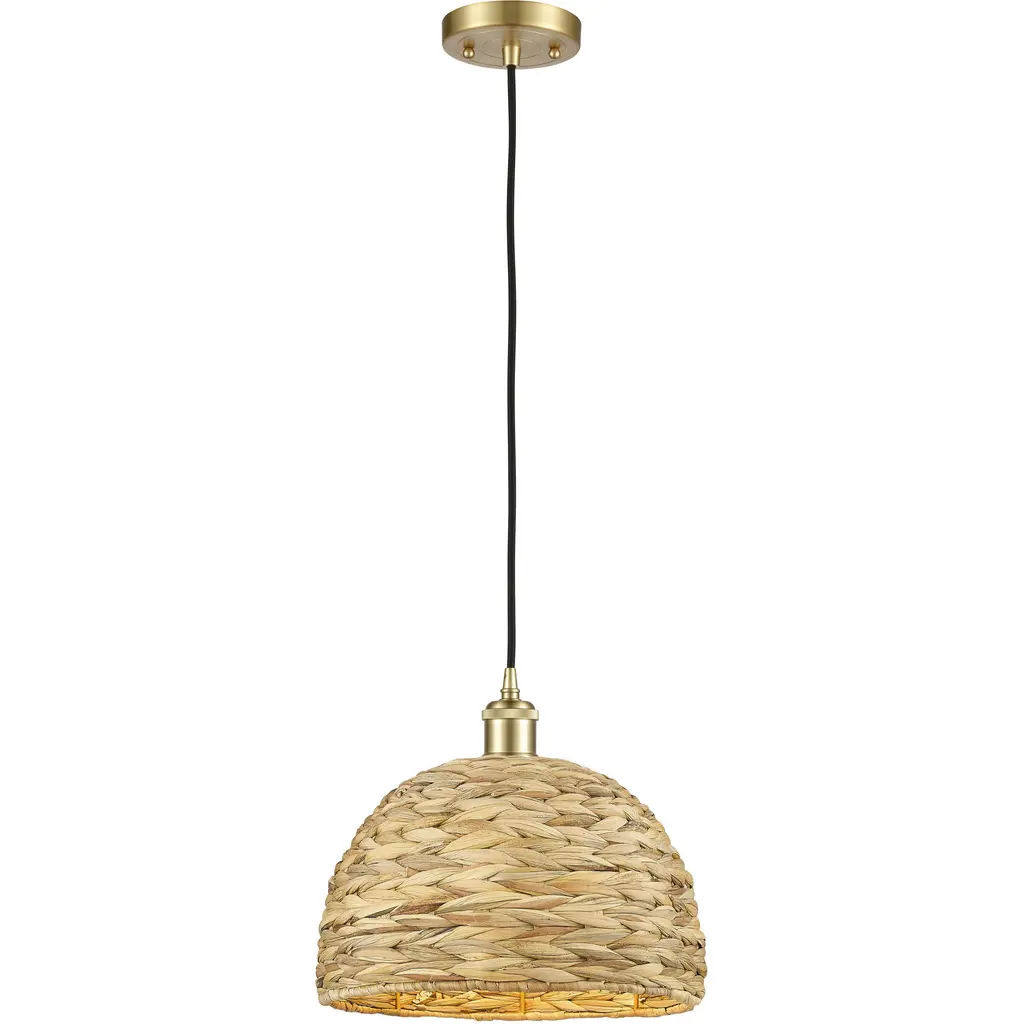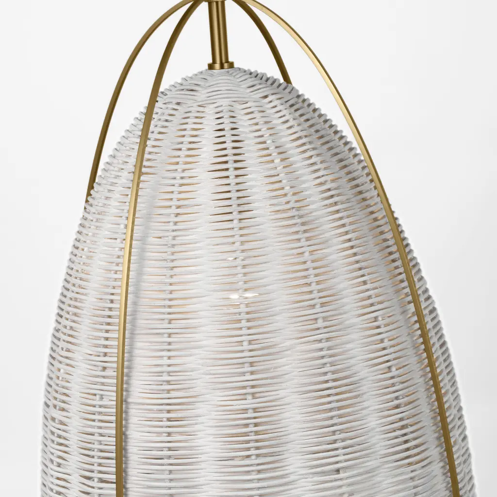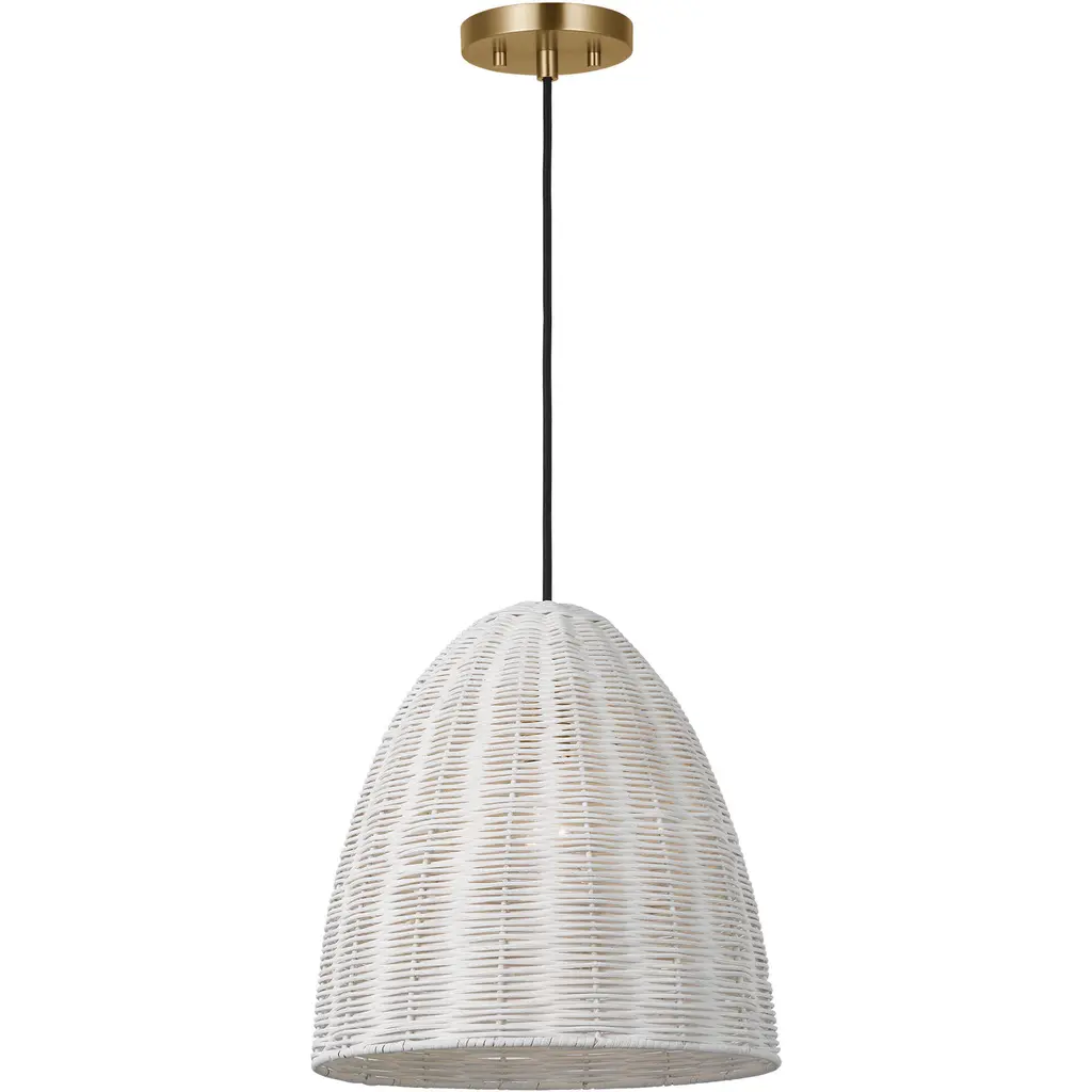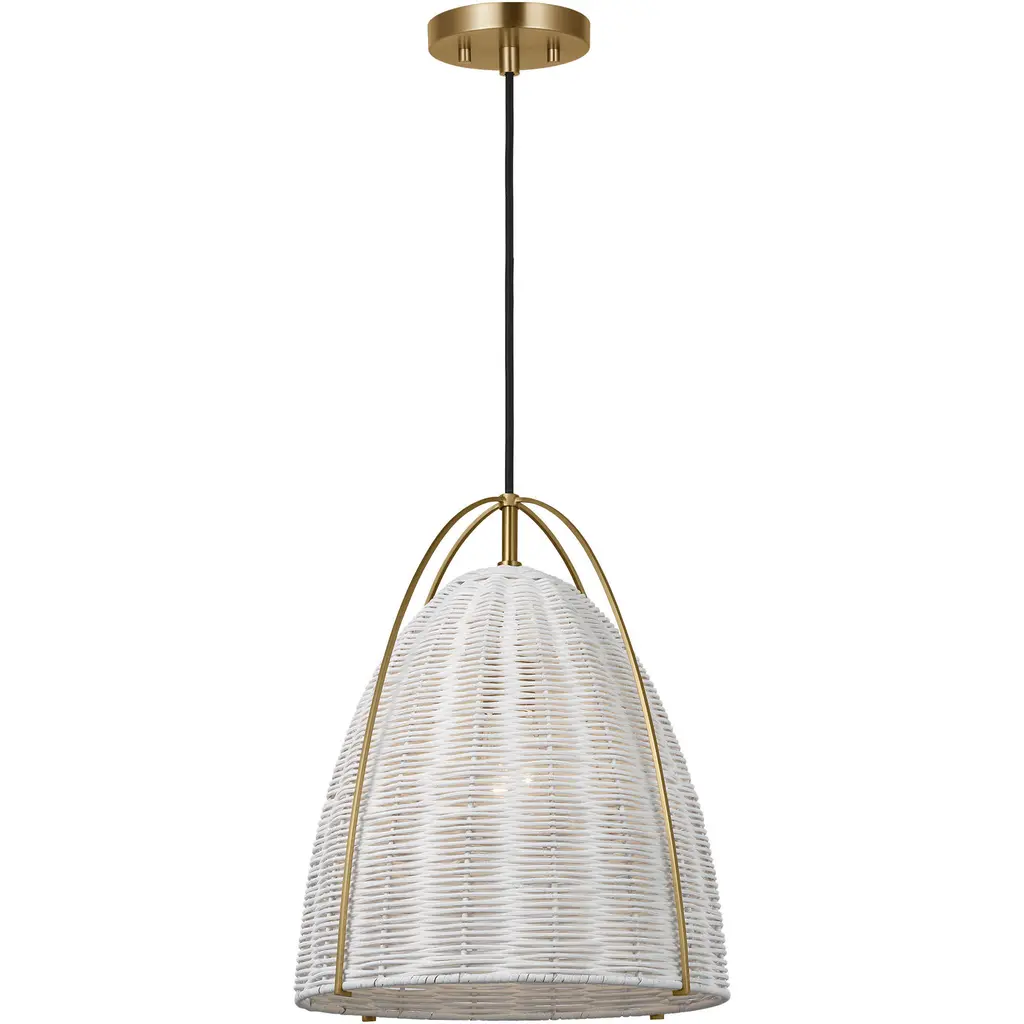 Sean Lavin Norman 1 Light 13.38 Inch Satin Brass With Chalk Wicker Pendant Ceiling Light