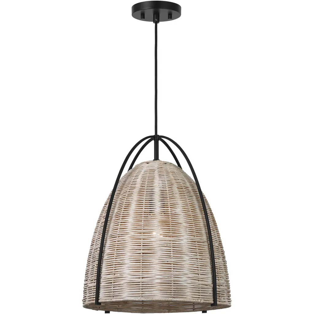 Sean Lavin Norman Pendant Ceiling Light In Midnight Black With Ash Wicker