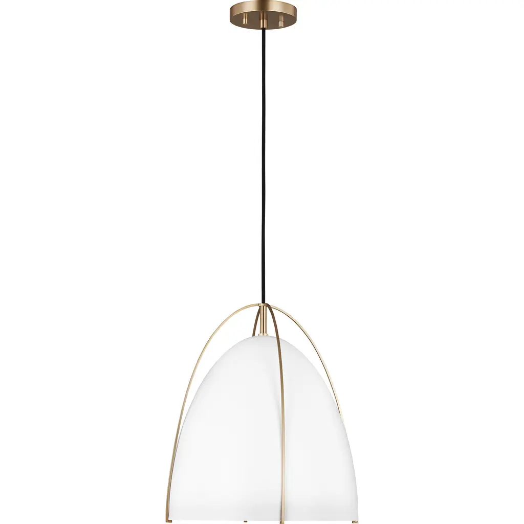The Norman one light indoor pendant in satin brass is an ENERGY STAR½ qualified lighting fixture that uses LED bulbs to save you both time and money.