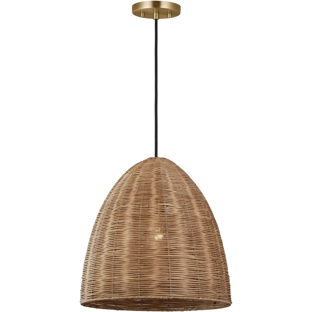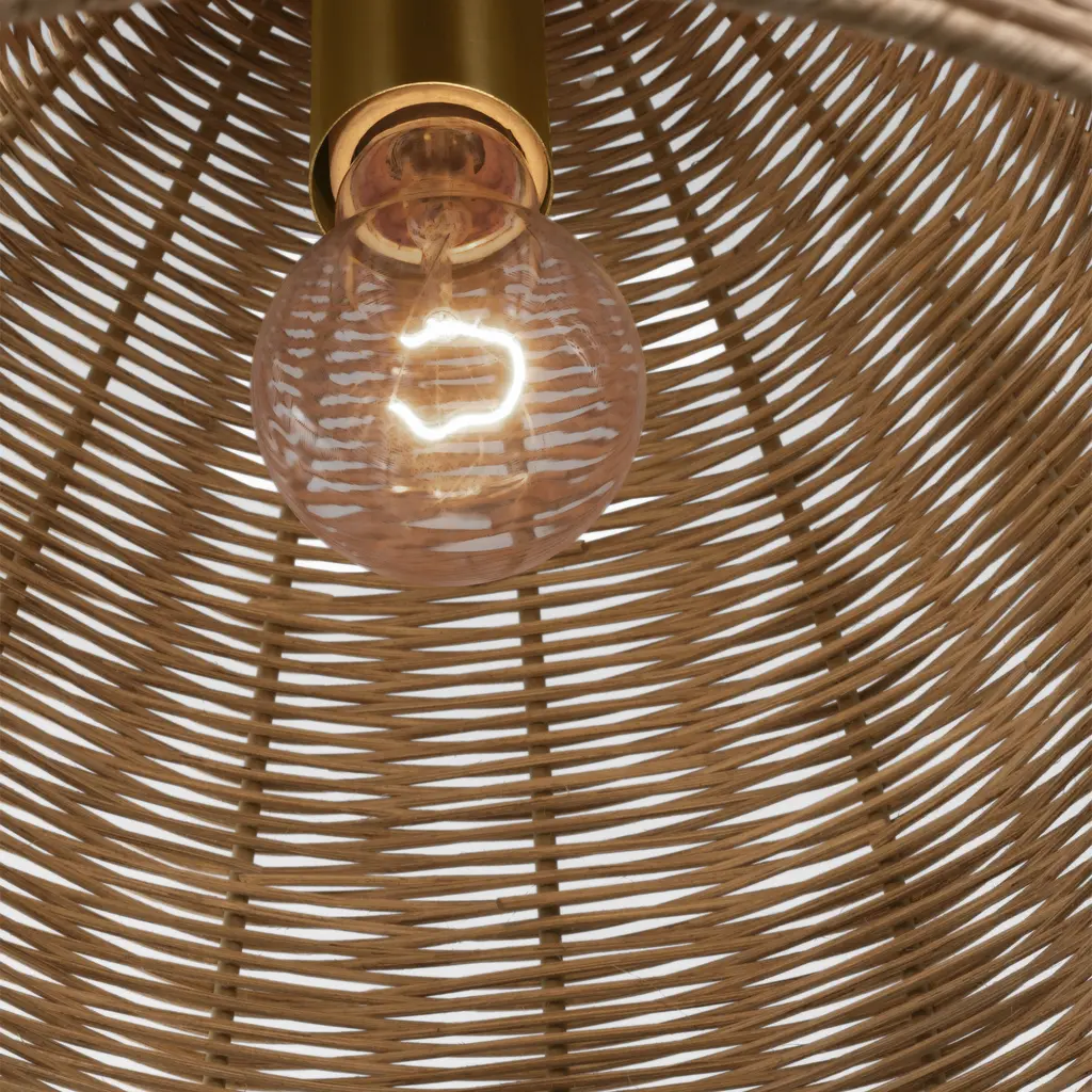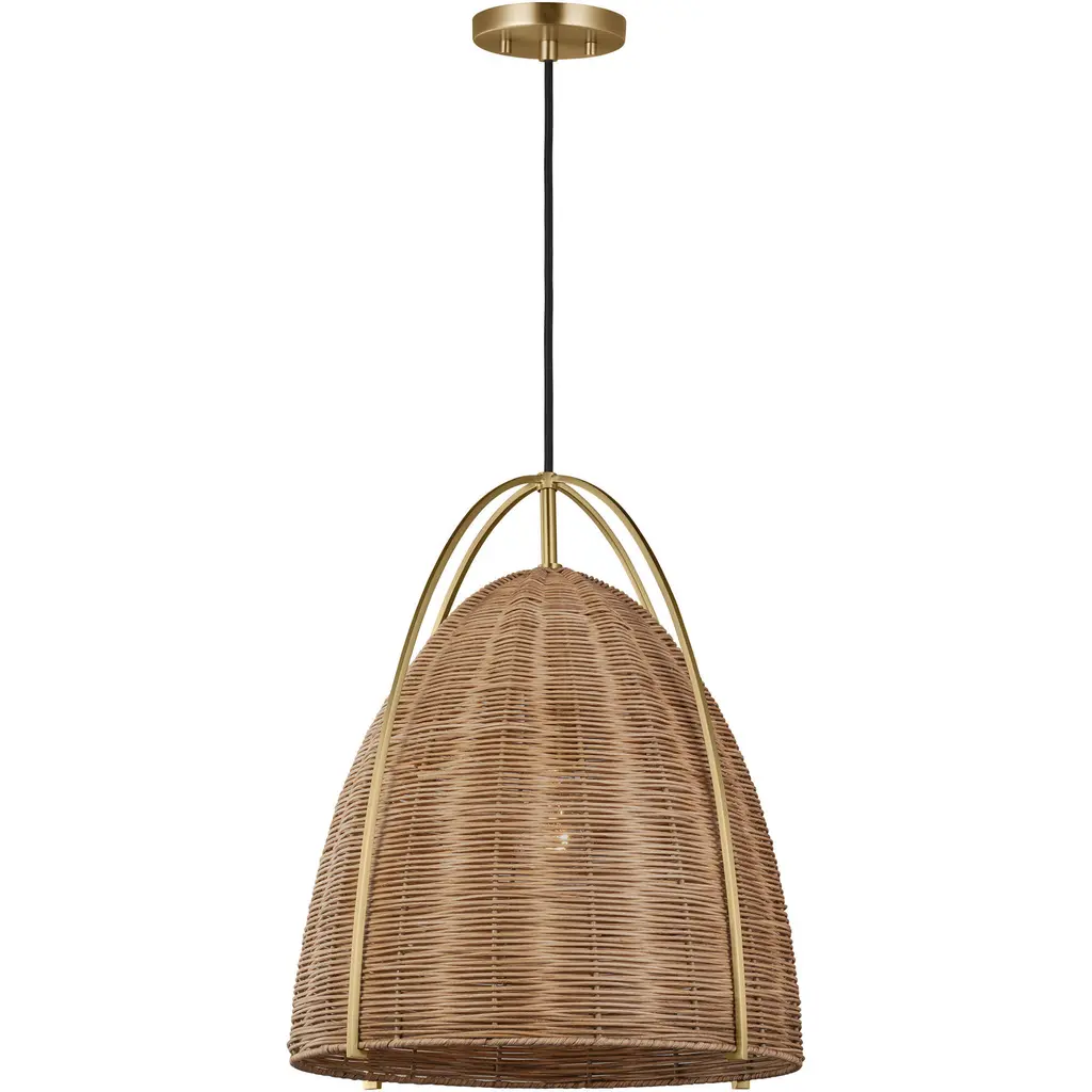 Sean Lavin Norman Pendant Ceiling Light In Satin Brass With Blonde Rattan