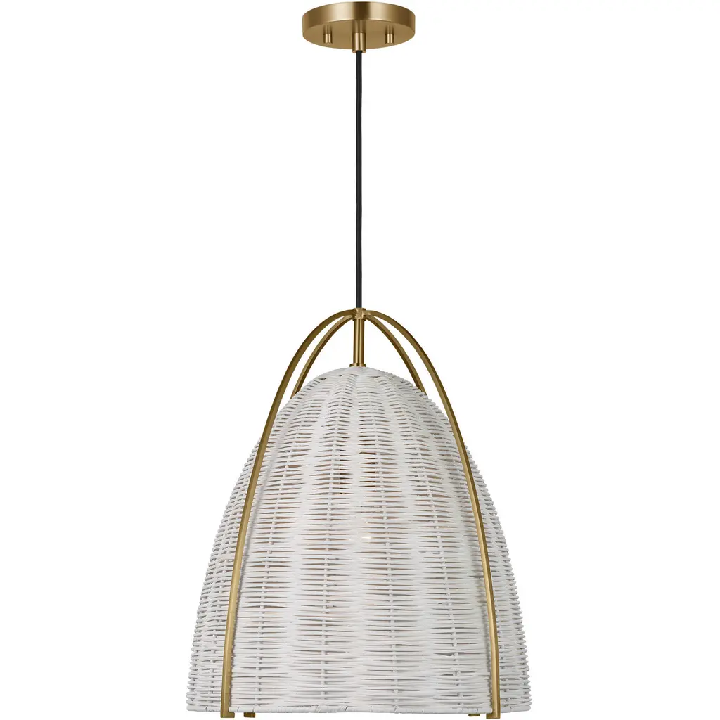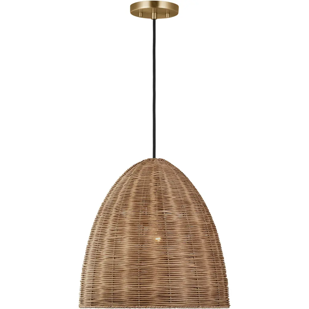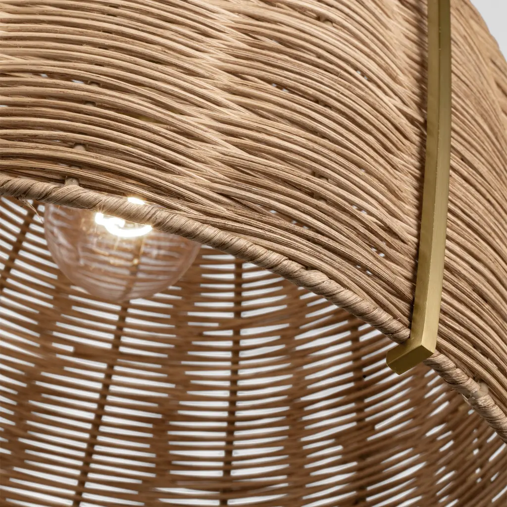 Sean Lavin Norman Pendant Ceiling Light In Satin Brass With Blonde Rattan
