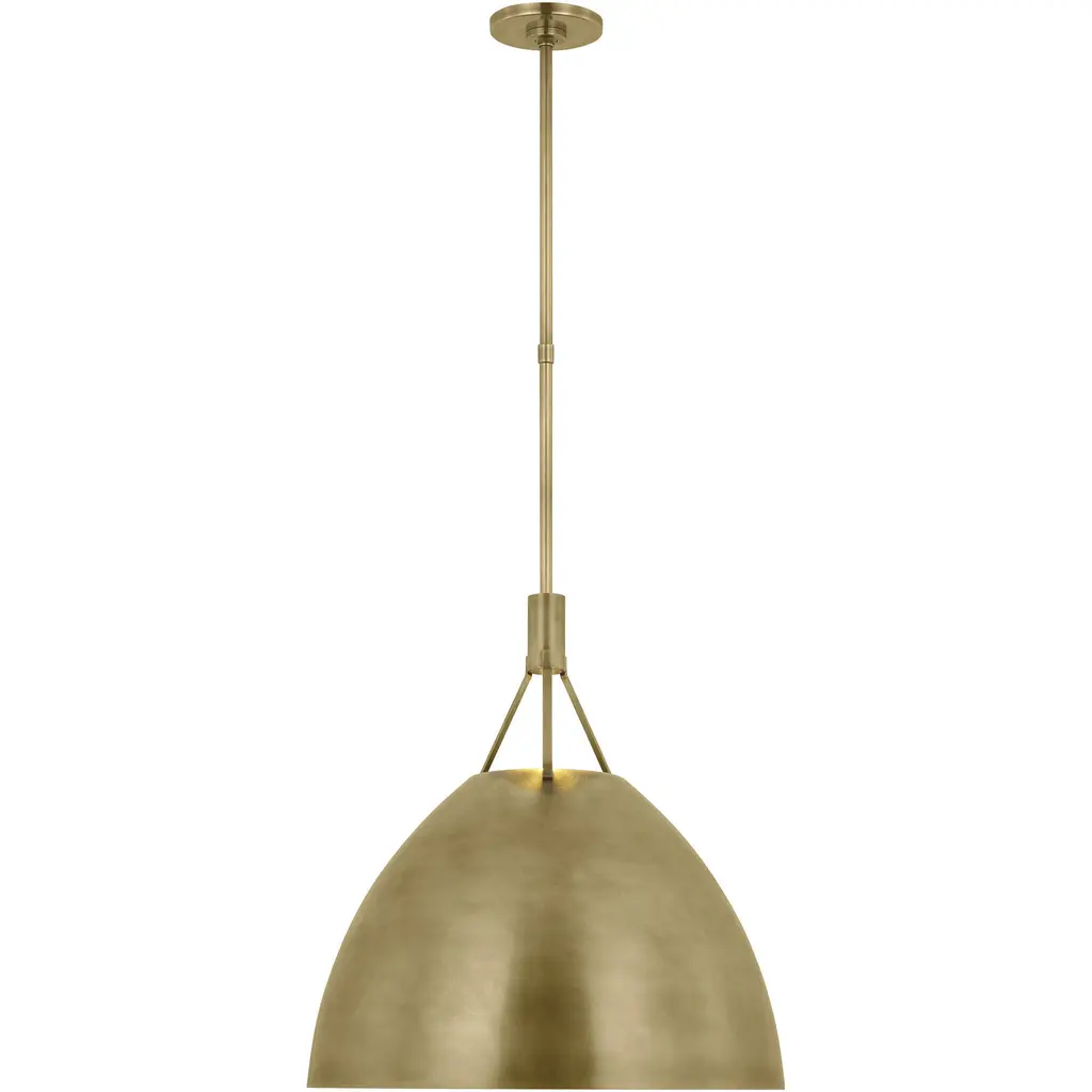 The refined Industrial Sospeso Dome X-Large Pendant by Sean Lavin will bring a touch of retro-modern style to any space. Featuring thick spinning, strong edge details, and beautiful thin straps that connects to the shade gives bold substance to this pendant. Fill your space with a wonderful warm glow and plenty of downward focused illumination. Available in three different silhouettes which can be mix-and-matched and grouped in multiples for a unique lighting option. Includes 12 watts, 527 total delivered lumens, 2700K LED module. Dimmable with most LED compatible ELV, Triac and 0-10V dimmers. Ships with (4) 12" and (2) 6" rigid stems in coordinating finish. Can be installed on a sloped ceiling up to 20°. 120V-277V.
