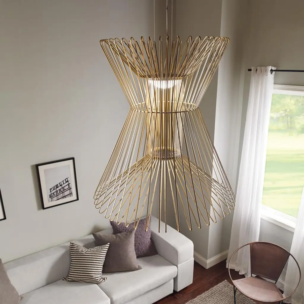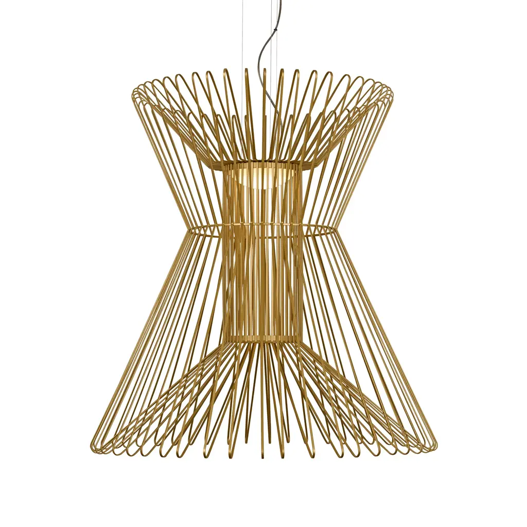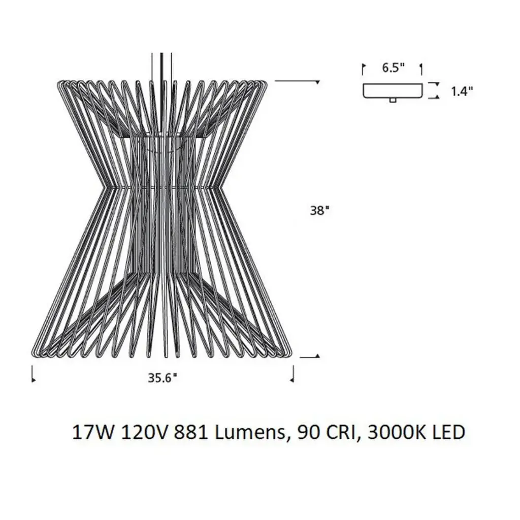 The modern Syrma LED pendant light features dozens of machined metal rods which are painstakingly fastened at perfectly spaced intervals to form an incredible multidimensional shade. At its core, this pendant emanates light from its smoothly diffused LED source to illuminate surfaces below such as kitchen island lighting, dining room lighting, home office lighting, entry lighting or even commercial conference room lighting. Inspired by mid-century modern design, the Syrma is offered in your choice of finishes and includes a coordinating cloth-covered cord and ceiling canopy. Features