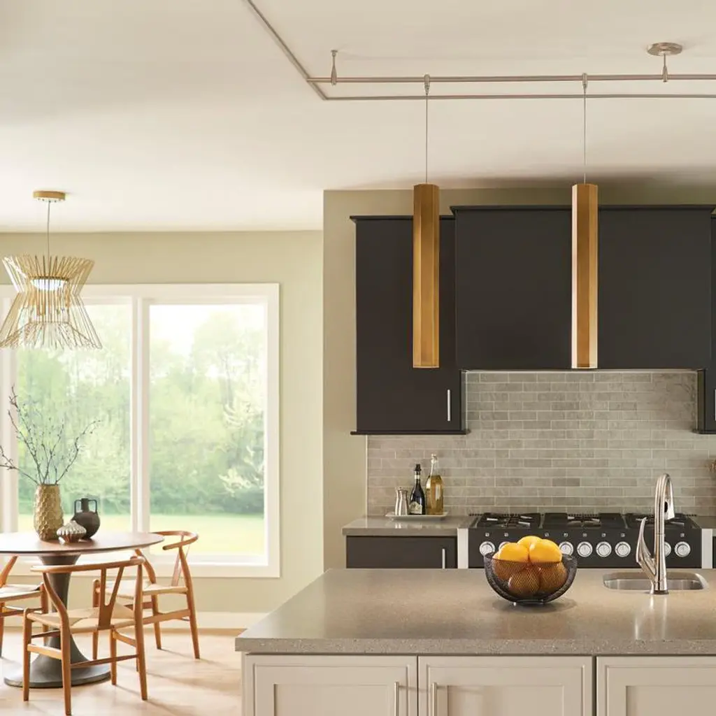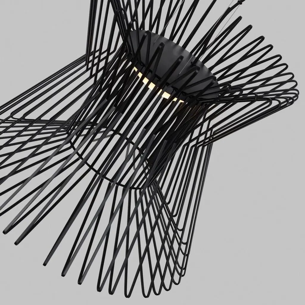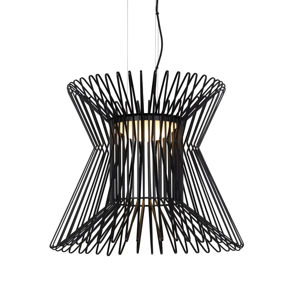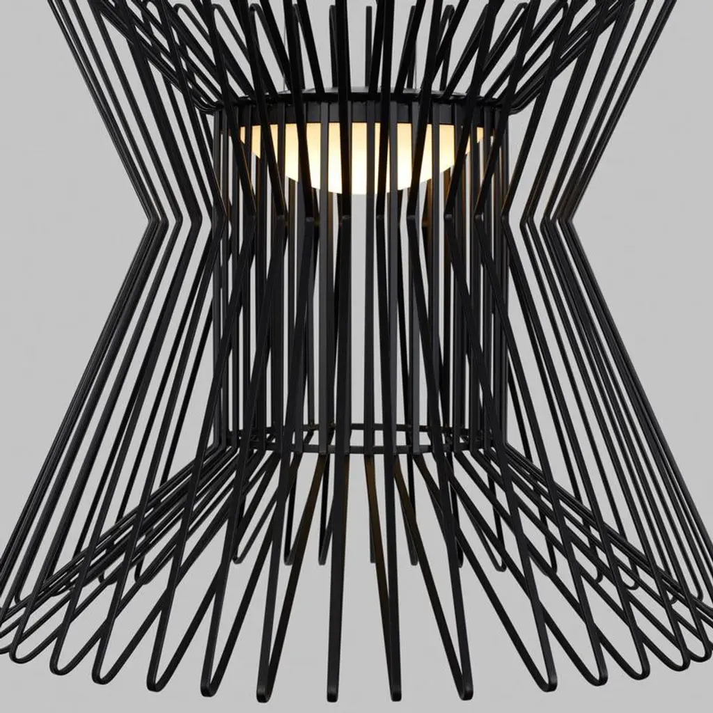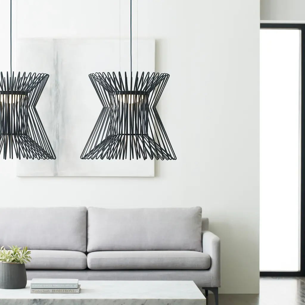 The modern Syrma LED pendant light features dozens of machined metal rods which are painstakingly fastened at perfectly spaced intervals to form an incredible multidimensional shade. At its core, this pendant emanates light from its smoothly diffused LED source to illuminate surfaces below such as kitchen island lighting, dining room lighting, home office lighting, entry lighting or even commercial conference room lighting. Inspired by mid-century modern design, the Syrma is offered in your choice of finishes and includes a coordinating cloth-covered cord and ceiling canopy. Features