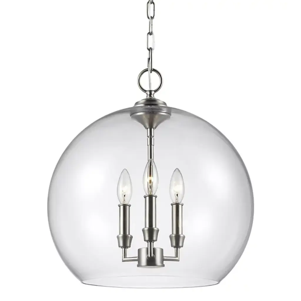 Marrying an elegant spherical silhouette with the on-trend look of exposed lamping, the Tabby lighting collection by is an all-together modern update to a classic pendant. Two different silver leaf techniques are used to produce either a dark brown or true silver Mercury glass effect. The spun socket cup adds an extra special detail in the transition from the glass shade to the bulb.