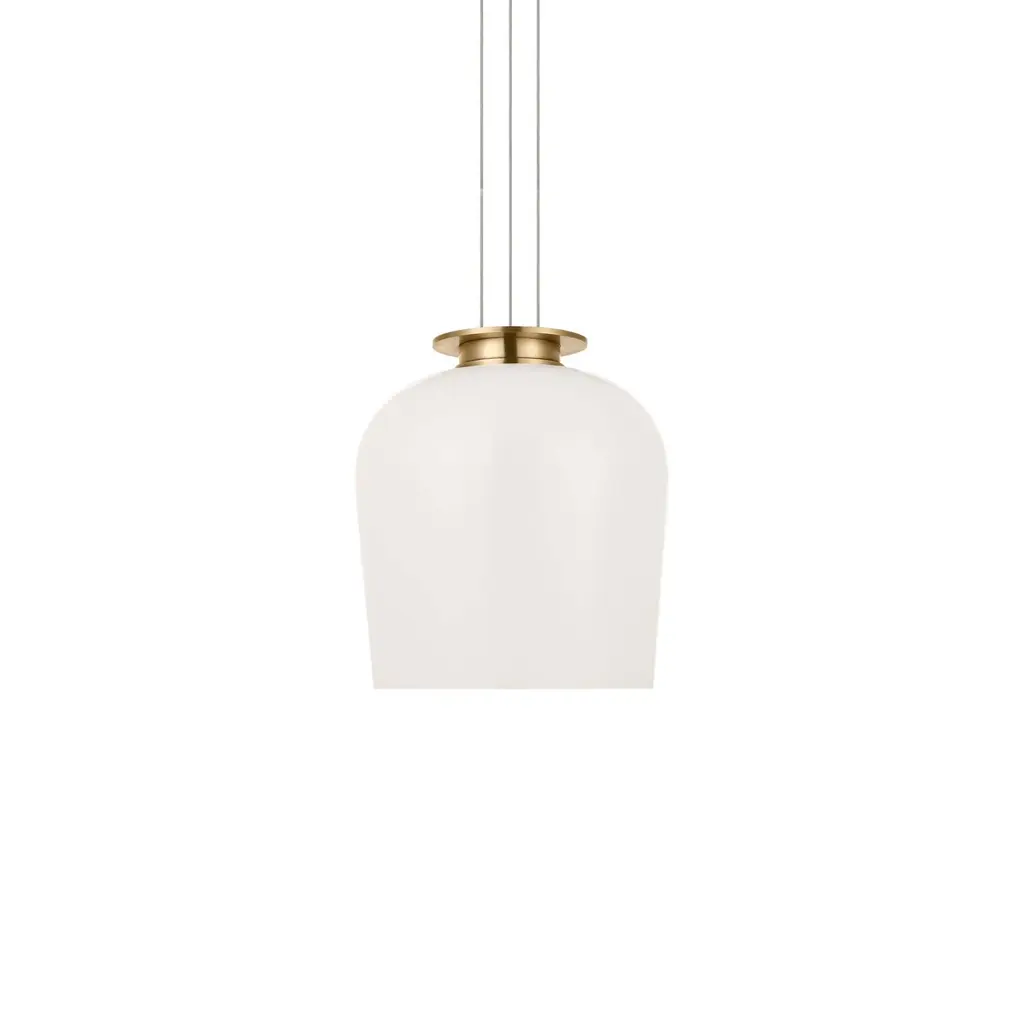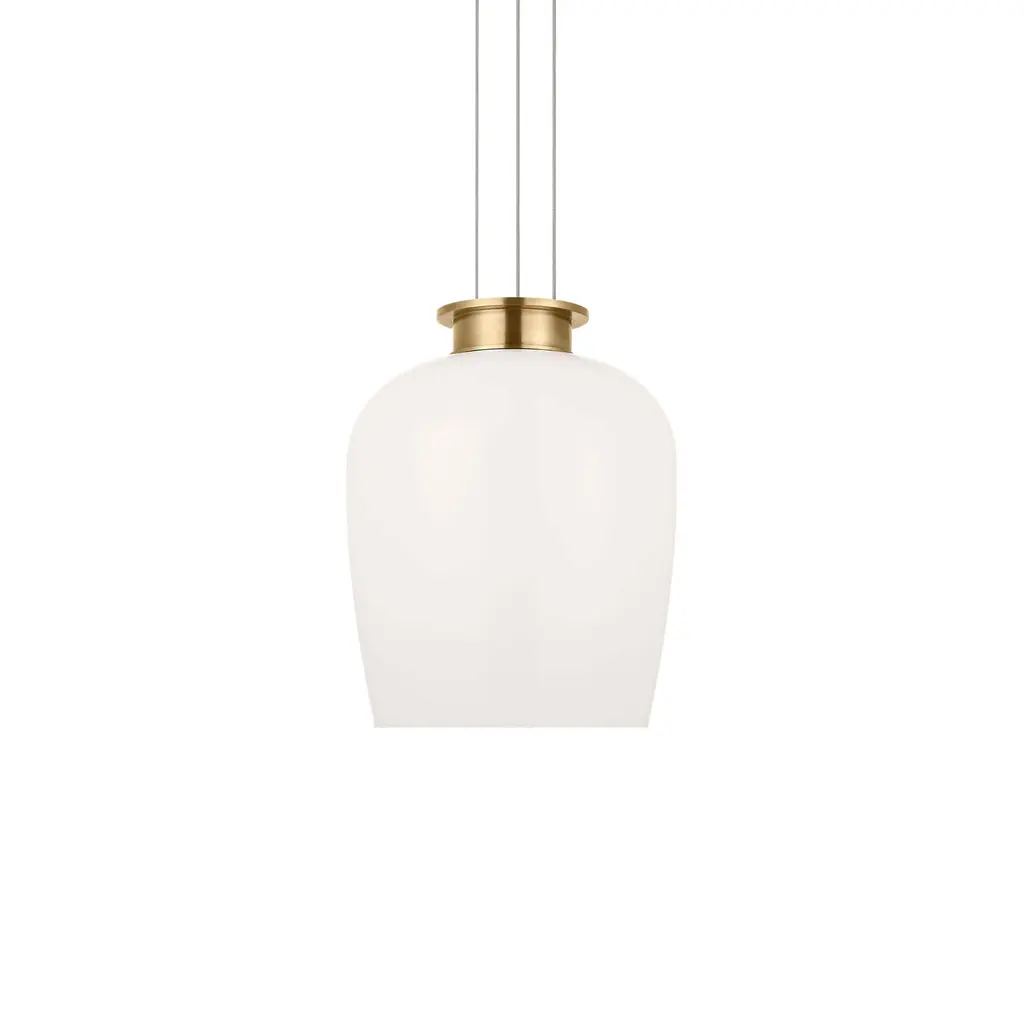 Elevate your space with the Sean Lavin Vetro Pendant Light from Visual Comfort & Co. Its refined scale and delicate milk glass exude understated luxury. Choose from antique brass or bronze for a harmonious silhouette, while the warm LED light, crystal diffuser, and brass reflector create a warm ambiance. Perfect for dining tables, kitchen islands, or corridors. Highlights