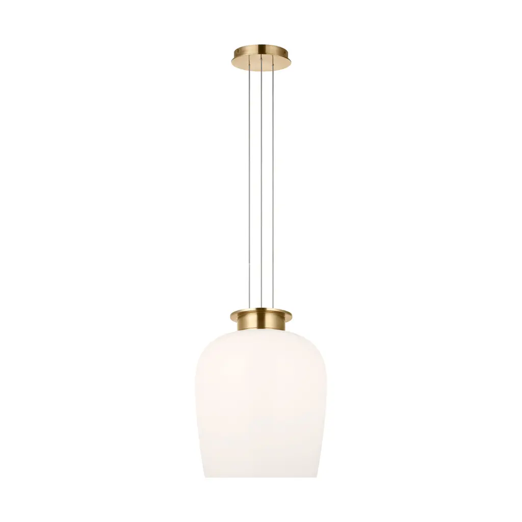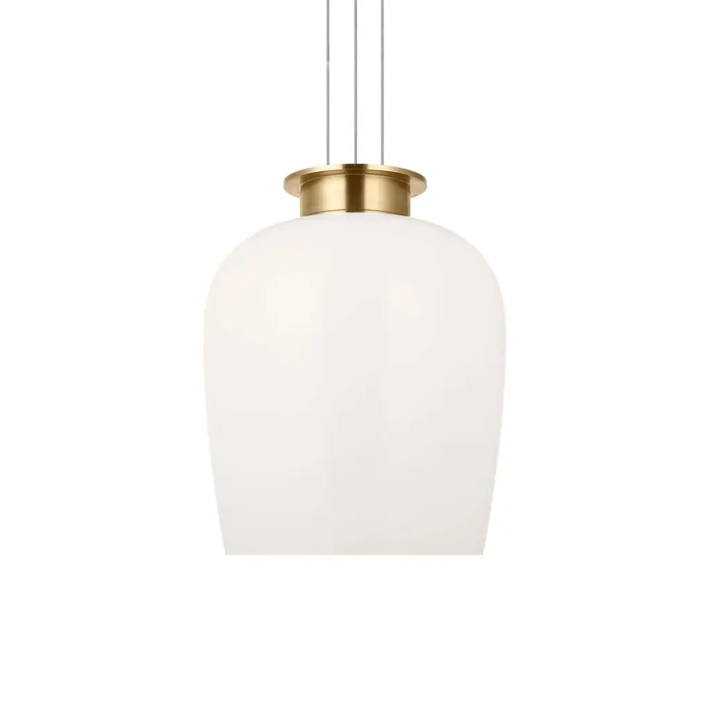Elevate your space with the Sean Lavin Vetro Pendant Light from Visual Comfort & Co. Its refined scale and delicate milk glass exude understated luxury. Choose from antique brass or bronze for a harmonious silhouette, while the warm LED light, crystal diffuser, and brass reflector create a warm ambiance. Perfect for dining tables, kitchen islands, or corridors. Highlights