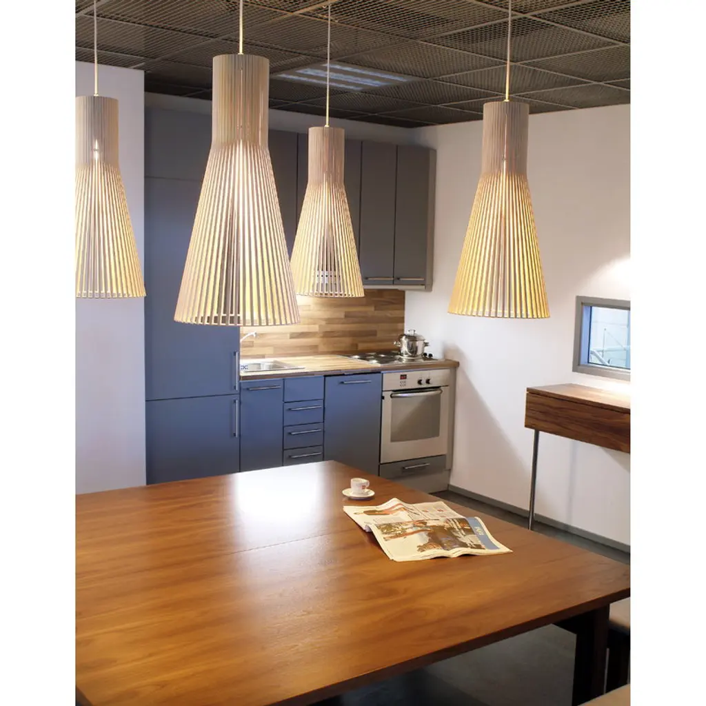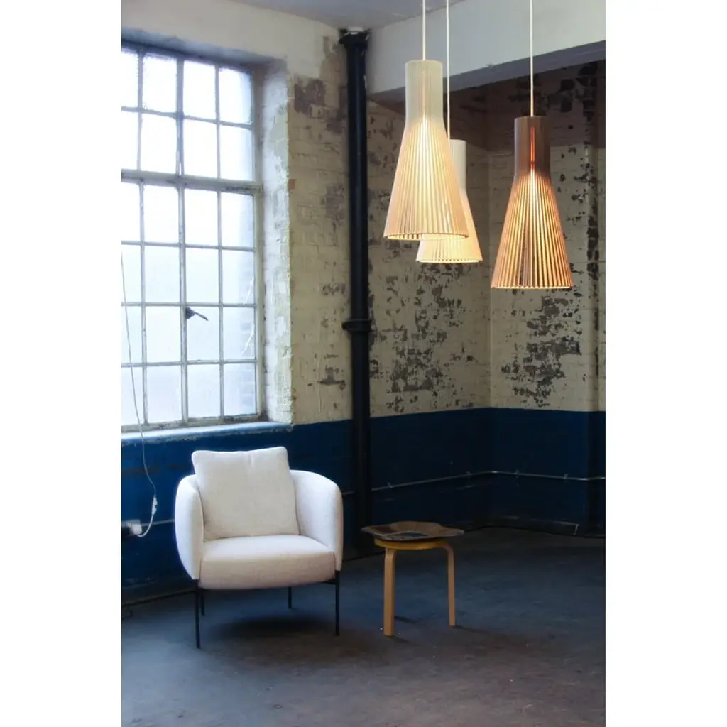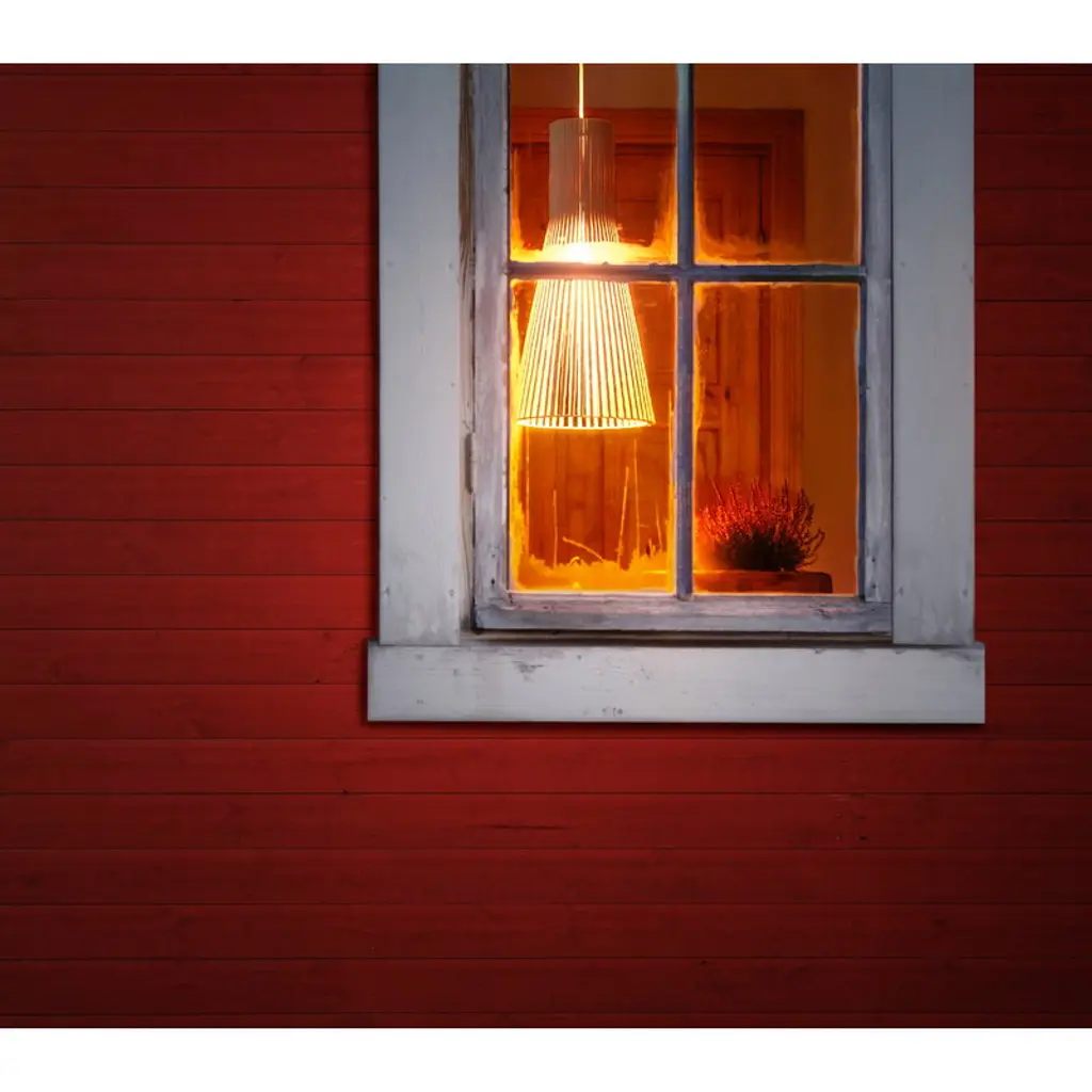Secto 4200 is a wooden pendant light with an airy structure and elegant feel. With its graceful appearance and long, narrow design, Secto 4200 catches the eye either alone or in groups. Secto Design luminaires are handmade in Finland from form-pressed Finnish birch. The lamps have clean Scandinavian silhouettes, and the wooden surface gives them a warm and appealing character. Secto lamps are designed by architect Seppo Koho who wanted to develop a softly filtering light that doesn’t dazzle but invites people to come closer. Secto lamps emphasize space and environment by creating a unique atmosphere and feeling of closeness.