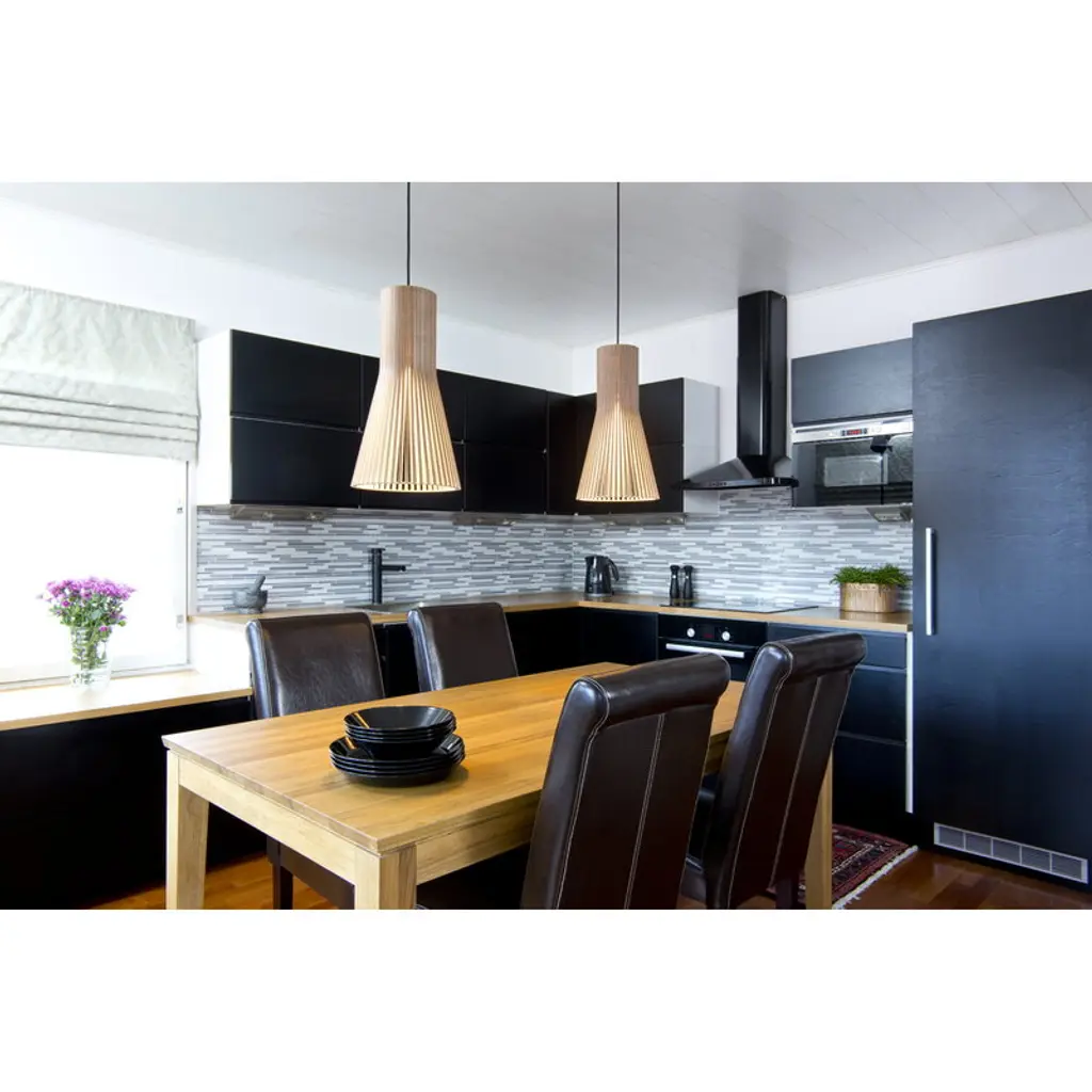 Secto 4201 is a wooden pendant light with an airy structure and elegant feel. Hang Secto 4201 above the dining table or create an eye-catching cluster of several pendants in larger spaces. Secto Design luminaires are handmade in Finland from form-pressed Finnish birch. The lamps have clean Scandinavian silhouettes, and the wooden surface gives them a warm and appealing character. Secto lamps are designed by architect Seppo Koho who wanted to develop a softly filtering light that doesn’t dazzle but invites people to come closer. Secto lamps emphasize space and environment by creating a unique atmosphere and feeling of closeness.