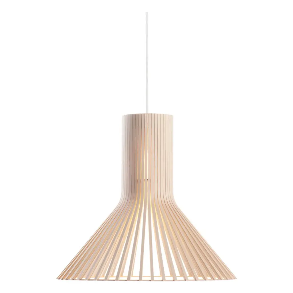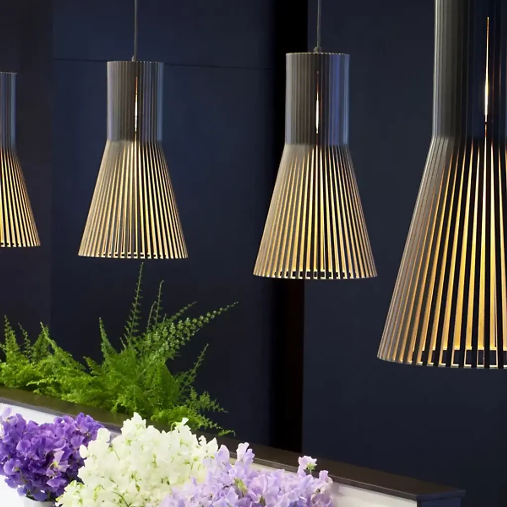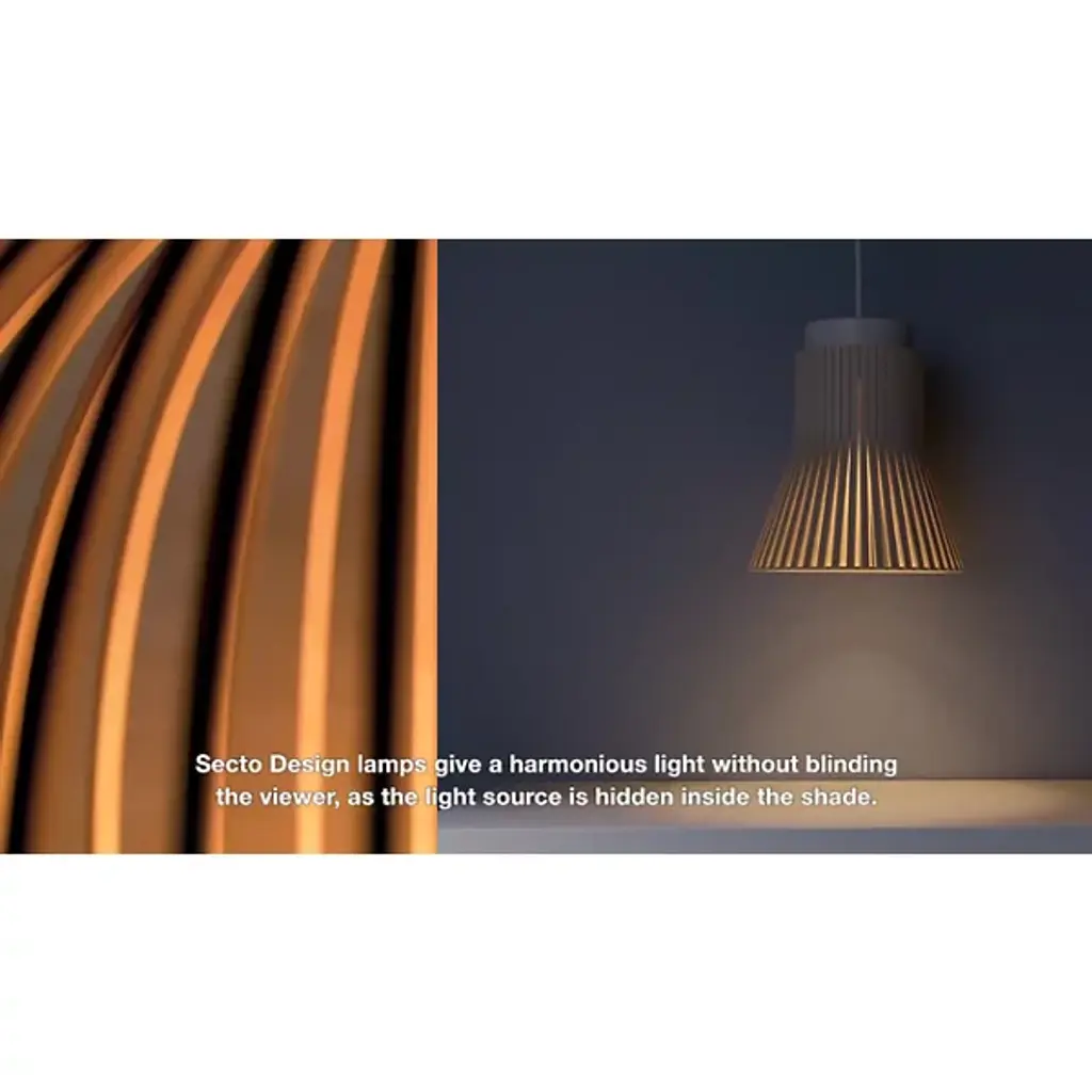 Neat and impressive. Complement your rooms’ refined, contemporary personality with the handcrafted Secto 4201 Pendant from Secto Design. Finnish designer and architect Seppo Koho pours his love for prototyping by hand into each of his creations. Koho brings to light beautiful birch wood, Finland’s national tree. The wood is trimmed into ultra-fine slats and hand-arranged by local craftsmen. The result is a clean geometric design that conceals light for an eye-pleasing experience. Turn it on and you’ll receive a beautiful silhouette as light creates a linear pattern. The pendant creates an inviting ambiance, a soft down glow fitting over a tabletop.