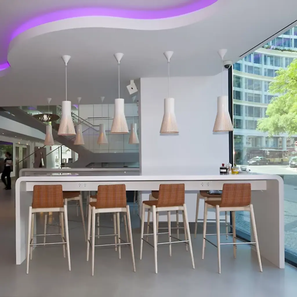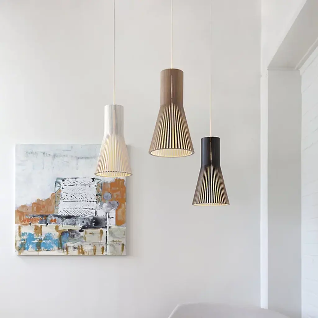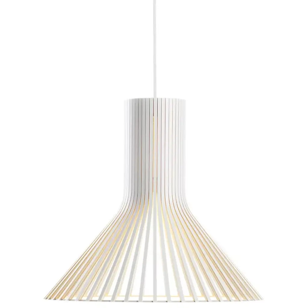 Neat and impressive. Complement your rooms’ refined, contemporary personality with the handcrafted Secto 4201 Pendant from Secto Design. Finnish designer and architect Seppo Koho pours his love for prototyping by hand into each of his creations. Koho brings to light beautiful birch wood, Finland’s national tree. The wood is trimmed into ultra-fine slats and hand-arranged by local craftsmen. The result is a clean geometric design that conceals light for an eye-pleasing experience. Turn it on and you’ll receive a beautiful silhouette as light creates a linear pattern. The pendant creates an inviting ambiance, a soft down glow fitting over a tabletop.