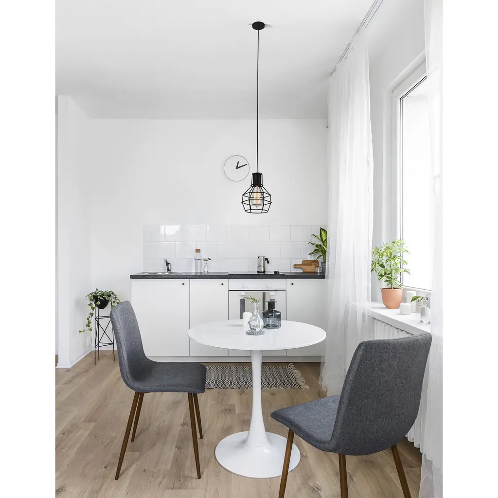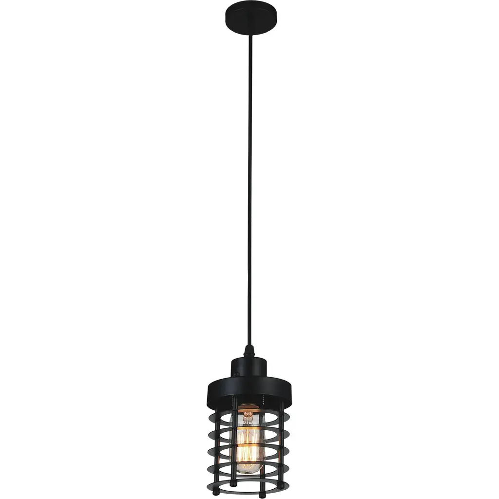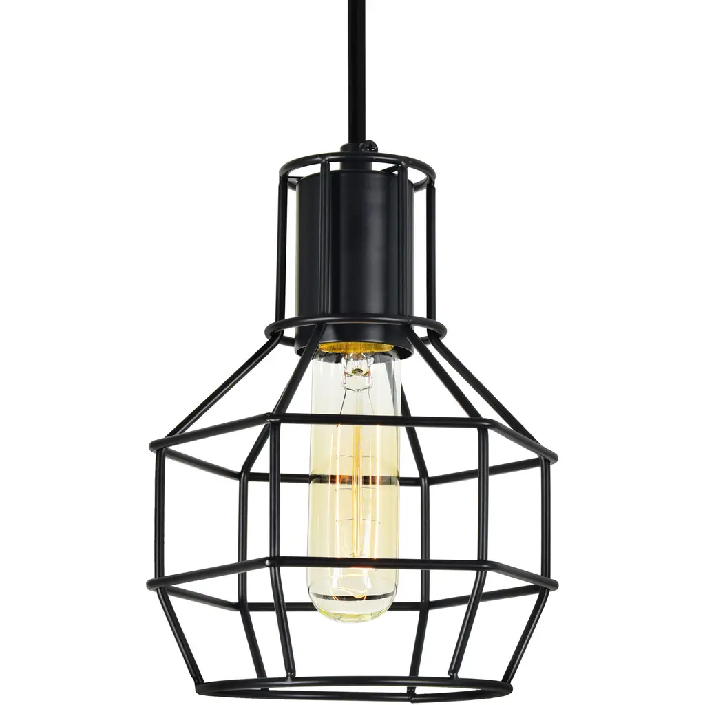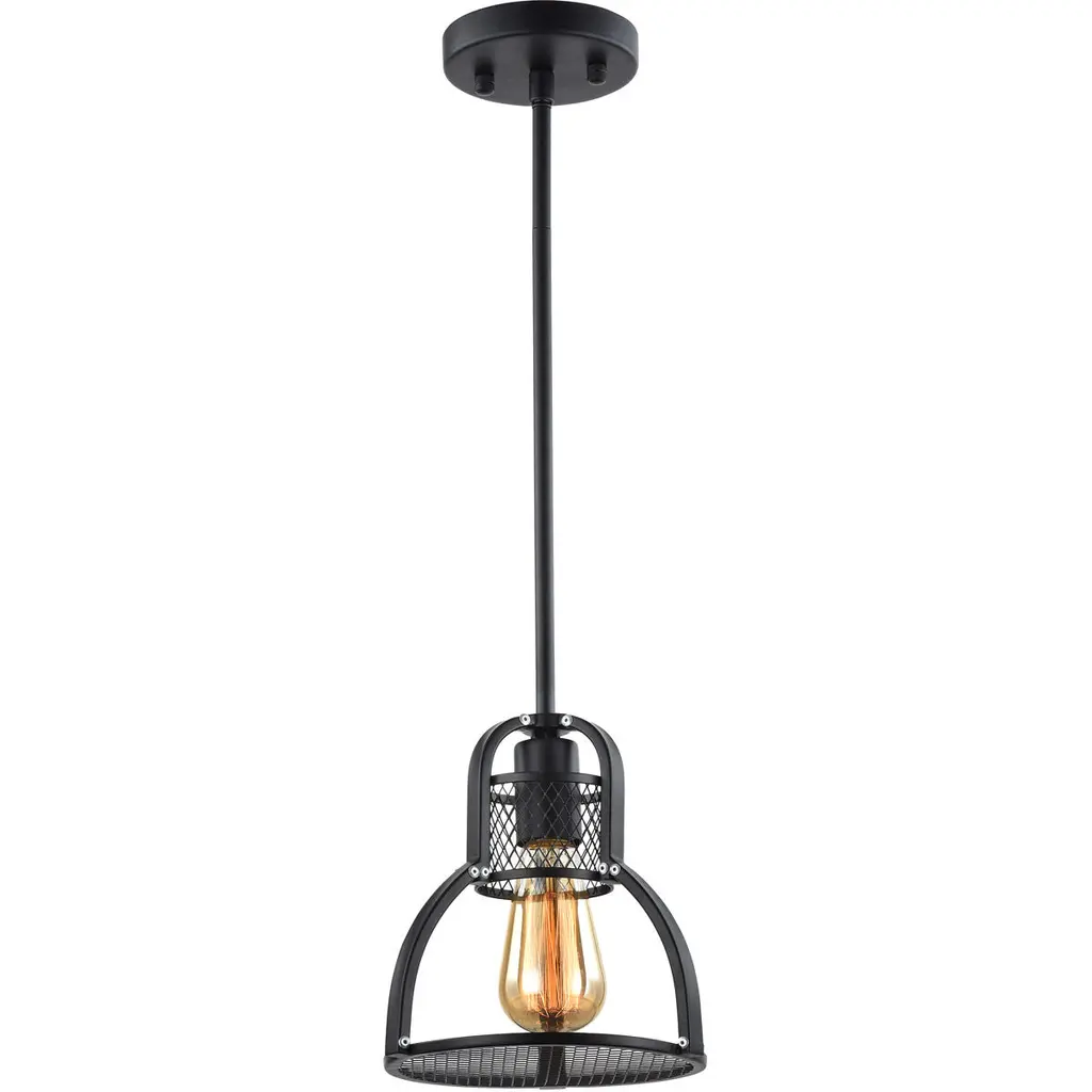Add a rustic-industrial touch to your space with the Secure 1-Light 6-Inch Black Pendant. Featuring a geometric openwork metal shade, this pendant is designed to showcase an exposed E26 bulb (not included) for a warm, vintage-inspired glow. Perfect as a standalone light for small corners or installed in multiples over kitchen islands, dining areas, or hallways, this mini pendant combines style and function in a compact design.