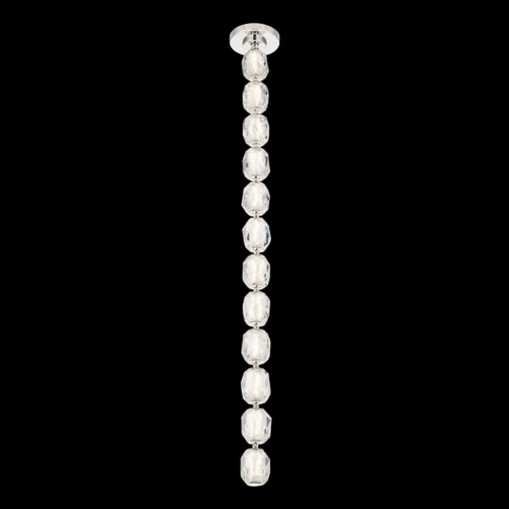The Seduction LED Pendant from Schonbek Forever is a spellbinding marriage of modern minimalism and opulent glamour. Featuring a color temperature selectable switch, this fixture presents a vertical strand of luminous pearls. Thousands of diamond-cut and polished crystals are cemented inside a faceted Radiance Crystal shell, creating a core that refracts and multiplies light in countless directions. Whether configured as a straight cascade of light or arranged in a graceful U-shape, the Seduction LED Pendant brings movement and life to any space.