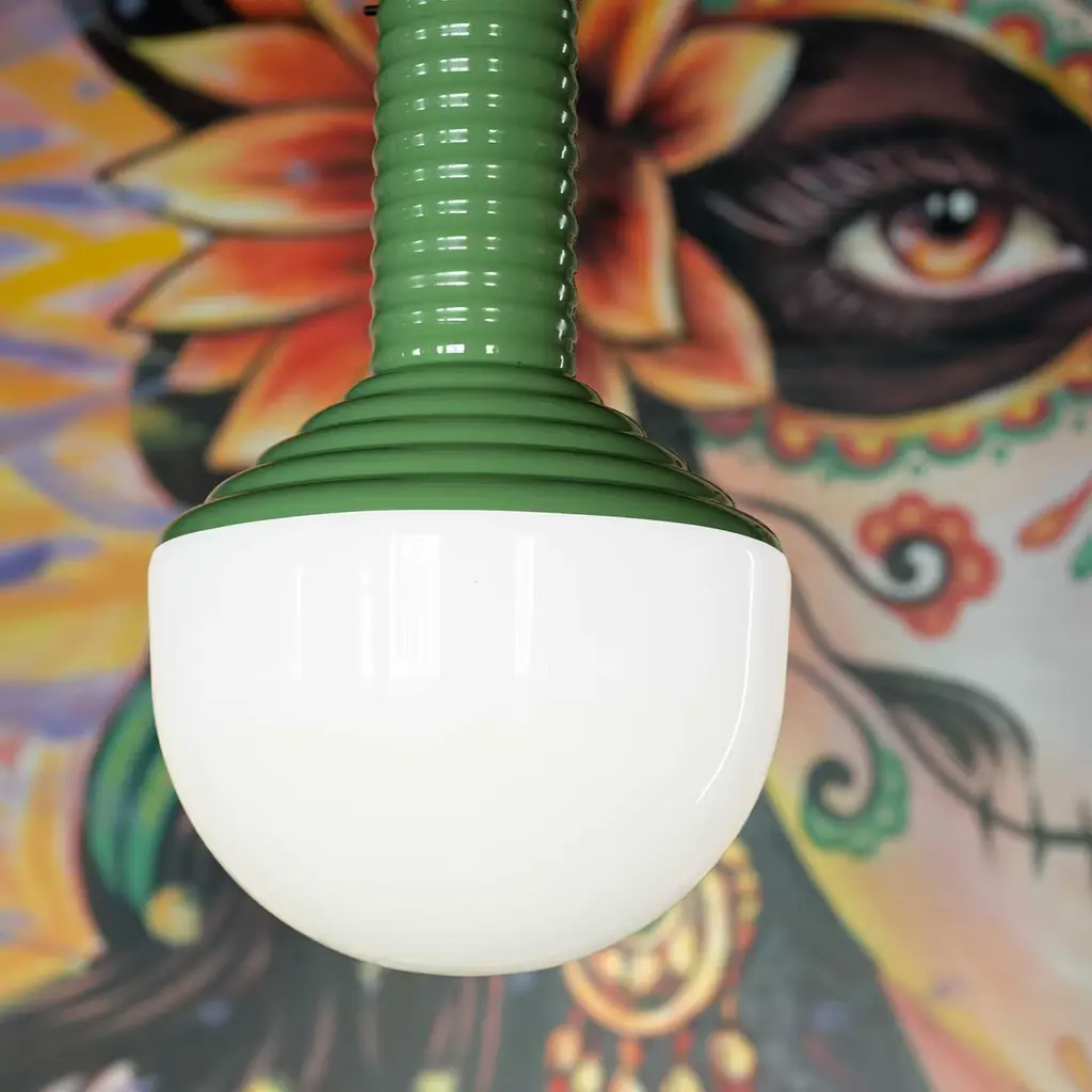 A pendant featuring a distinctive half-painted glass diffuser, showcasing a harmonious blend of artistic design and functional lighting. This unique fixture adds a touch of modern elegance to any space, casting a soft and atmospheric glow while serving as a striking decorative element.
