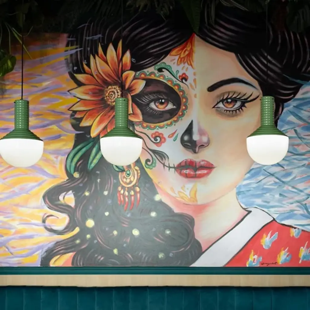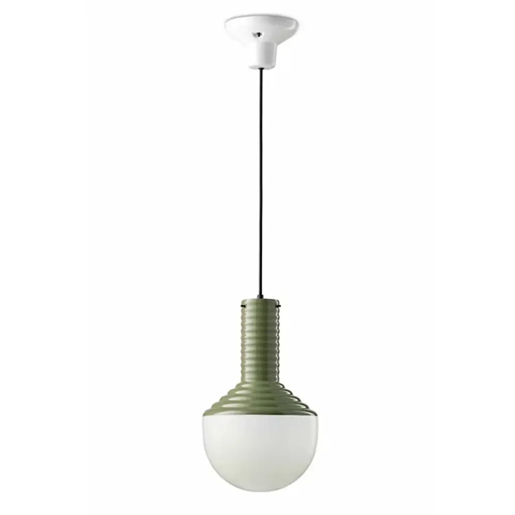 The Selaron Pendant from Ferroluce provides illumination and appeal to interiors, adding a layered light and lasting appeal when suspended from a dome canopy via a slim cable. Designed and named to honor the world-famous Brazilian steps, its own ceramic socket housing steps down to a dome-shaped shade of painted glass, adding a clever contemporary appeal to its surroundings. The translucent dome texture mellows and moderates the lamping, distributing even ambiance in all directions.