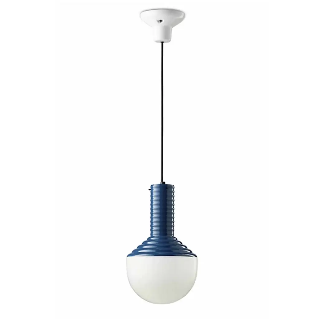 The Selaron Pendant from Ferroluce provides illumination and appeal to interiors, adding a layered light and lasting appeal when suspended from a dome canopy via a slim cable. Designed and named to honor the world-famous Brazilian steps, its own ceramic socket housing steps down to a dome-shaped shade of painted glass, adding a clever contemporary appeal to its surroundings. The translucent dome texture mellows and moderates the lamping, distributing even ambiance in all directions.