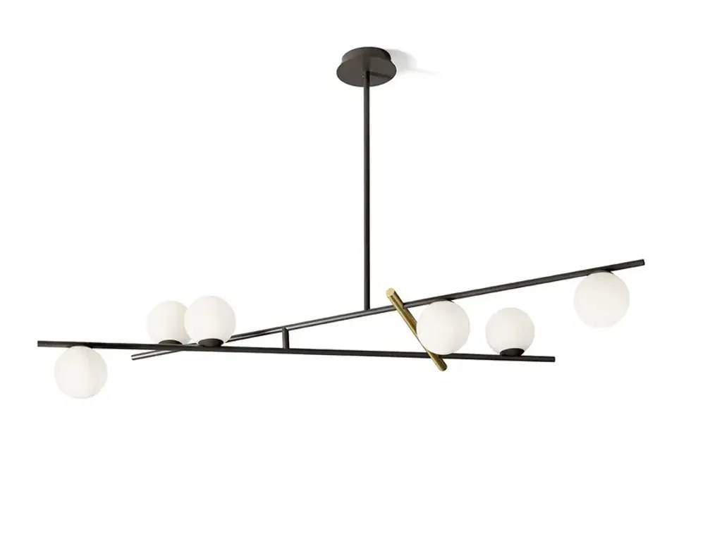 Sculptural linear pendant inspired by the Greek goddess of the moon, Selene. Features illuminated hand cast glass in Full Moon white and New Moon Clear. Available in Standard Finishes, Black Iron, Gold Leaf, Silver Leaf and Soft Gold Leaf. Rod(s) are con