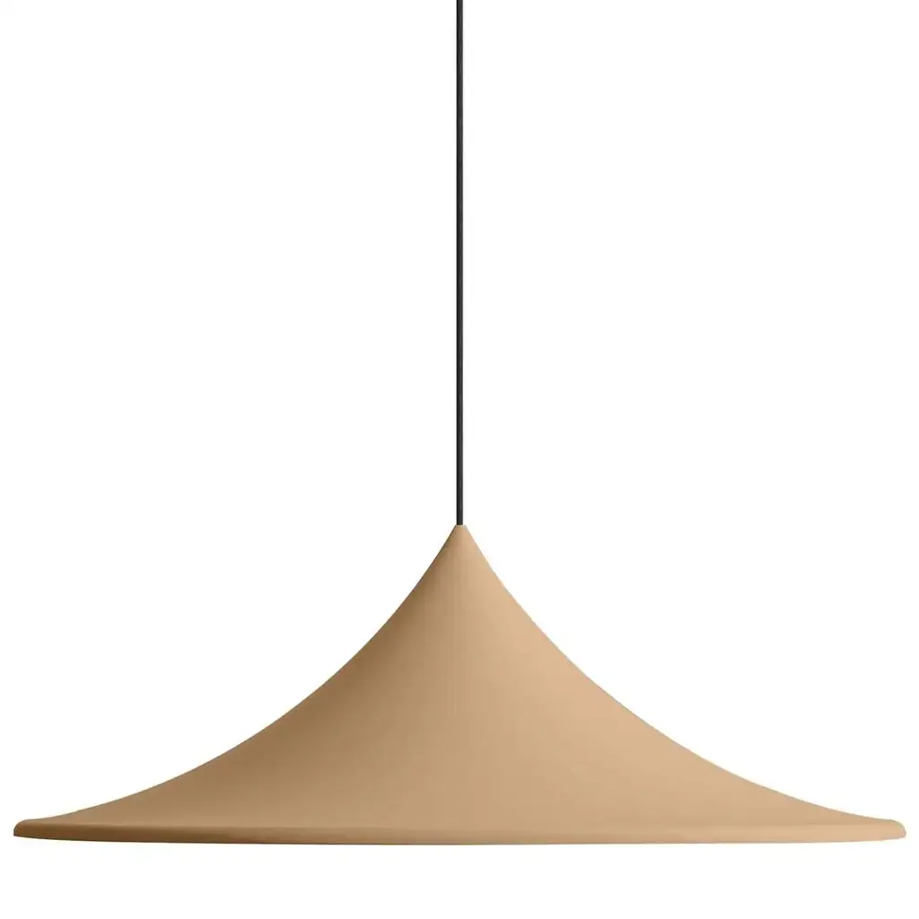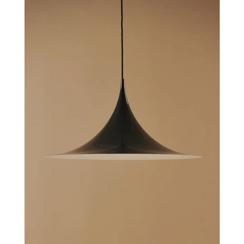 The Semi pendant lamp by GUBI charms with its playful, trumpet-shaped silhouette. The unique shape of the Semi lamp gives a wide spread of light around the room. The Semi pendant lamp was designed by designer duo Bonderup & Thorup, and it is available in various finishes from classic matt tones to shiny metal and colorful glossy shades. In a larger space, you can also create a unique cluster by combining several different-sized and colored Semi pendants together.
