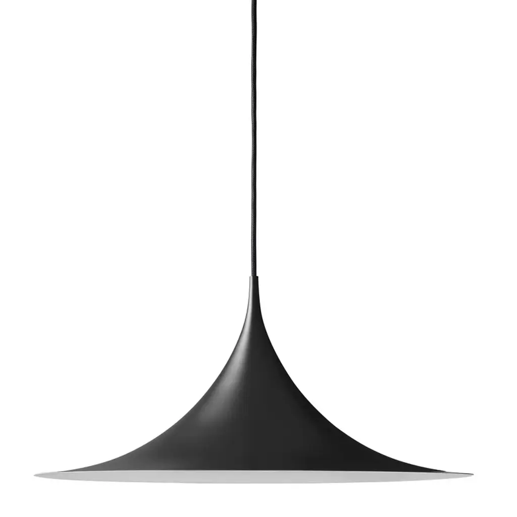 Semi emerged in 1968 from the creative partnership between Claus Bonderup and Torsten Thorup, as a corrective to the cliched cozy image of Nordic style. They wanted to create a lamp with sharply clean lines and, after recognition from the Royal Danish Academy of Fine Arts, it went on to become a Danish best-seller in the ‘80s. The arch-shaped metal shade, in a selection of enameled tones, creates a diffused cone of light. Ideal over a dining table or kitchen work surface.
