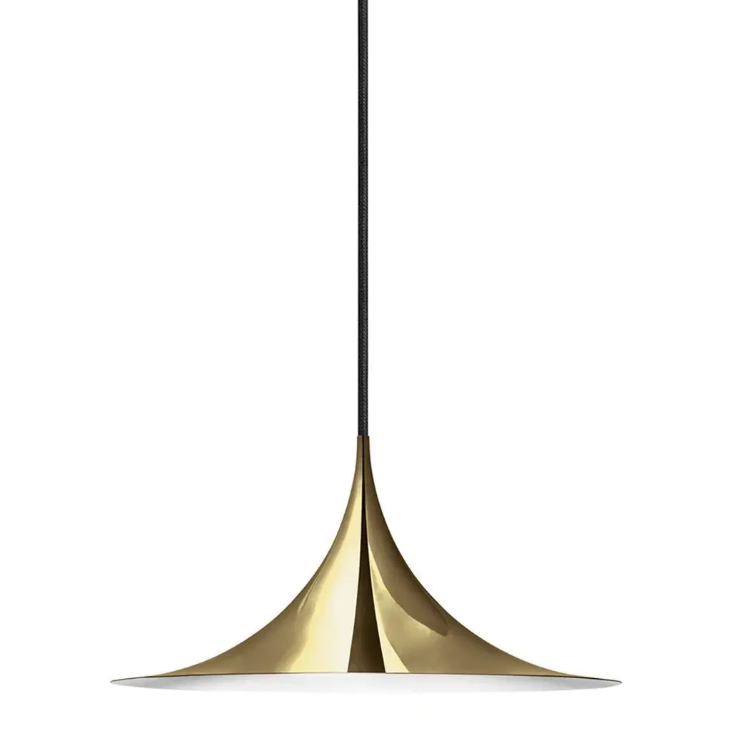 The Semi Pendant is a unique pendant lamp, based on two quarter-circles put together, back-to-back. It's distinctive arch-shaped, enamelled metal shade creates a diffused, cone-shaped light, ideal over a dining table or kitchen work surface. With its lightness of form, unique timeless design and range of colours and sizes, the Semi Pendant is extremely versatile and well suited to both private and public spaces. The distinctive Semi Pendant with its arch-shaped shade in lacquered hand-spun aluminum creates a diffused, cone-shaped light, ideal over a dining table or kitchen work surface. Canopy included. The textile cord is black, except for white, which matches the shade.