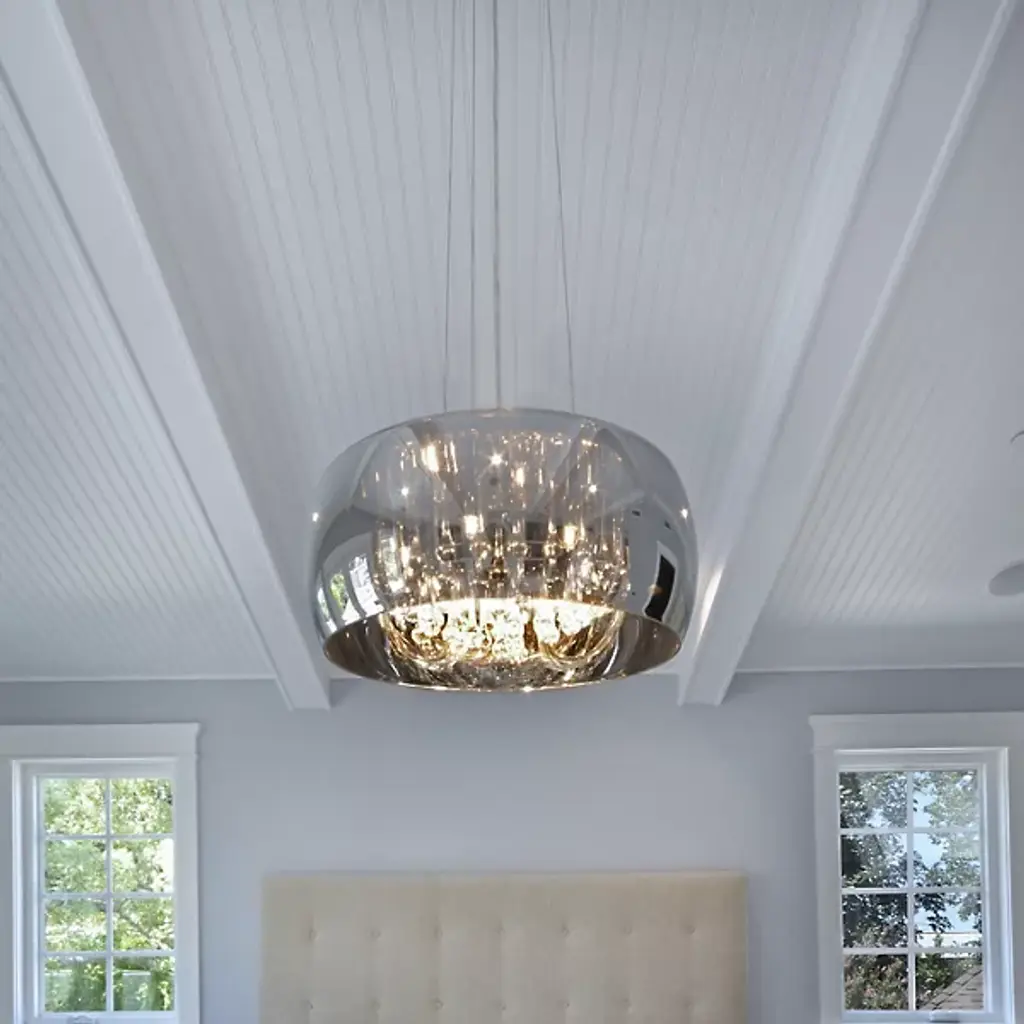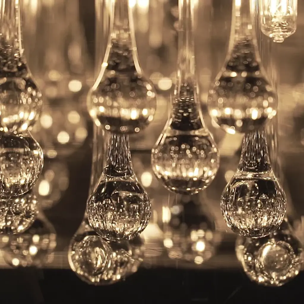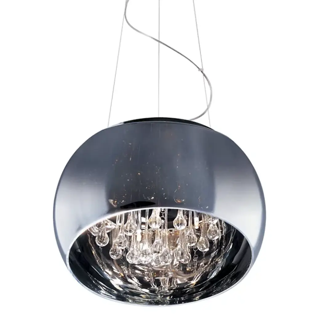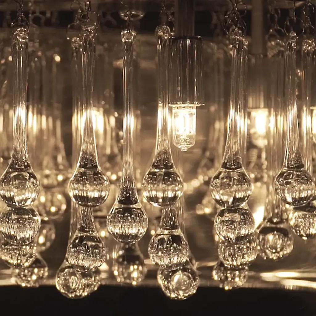 "Biology meets technology in the Sense life source." In the ET2 Sense Pendant, a mirrored glass sphere hides an illuminated inner surface with petite crystal drops quietly refracting the gilded light. Its lifeline swirls gently down from above. More than just a hanging light, Sense gives a space a living, breathing, dramatic center.