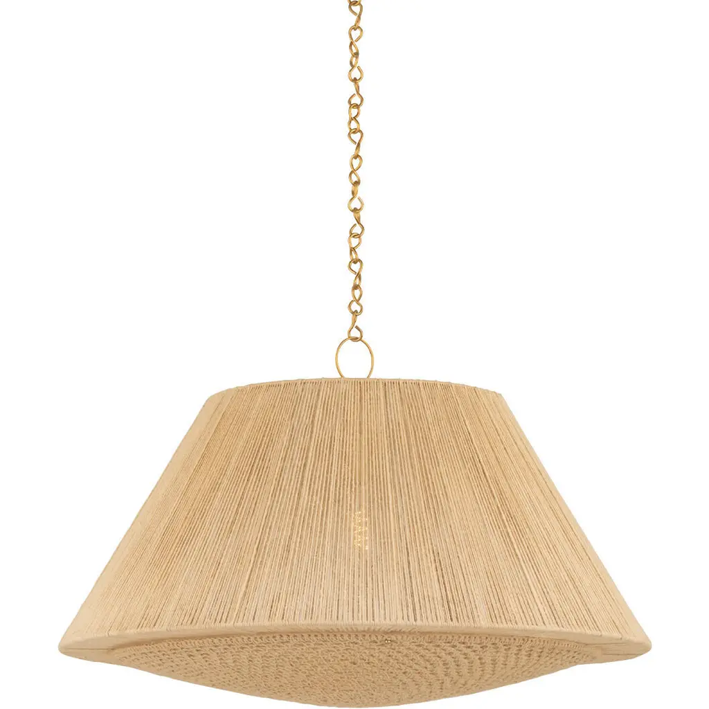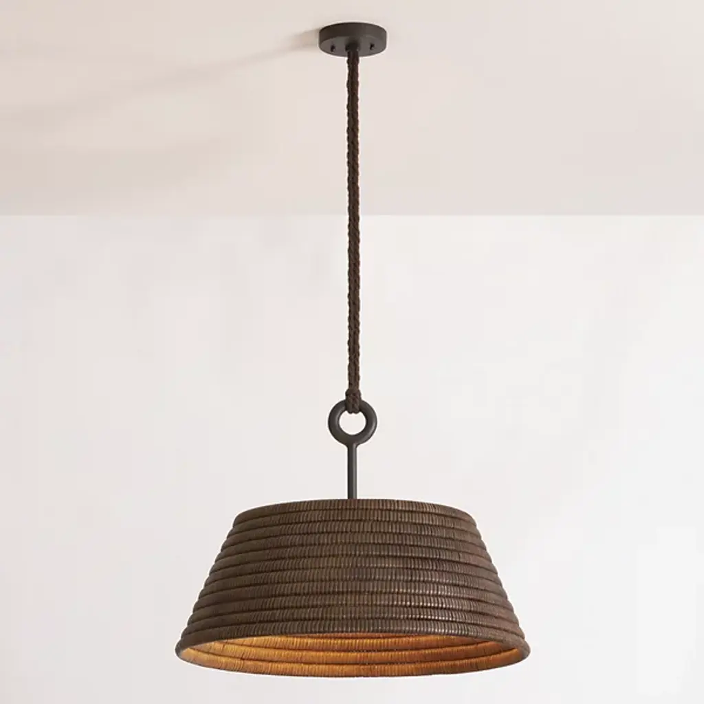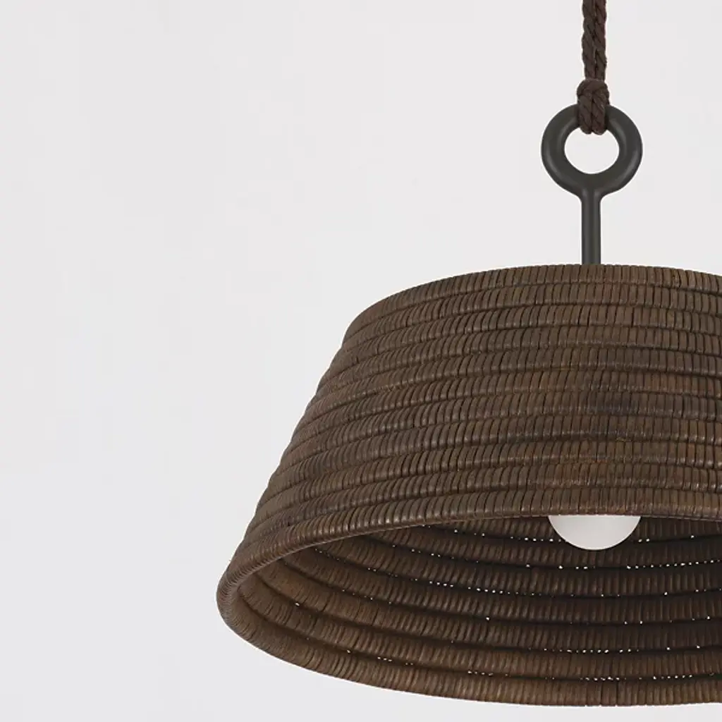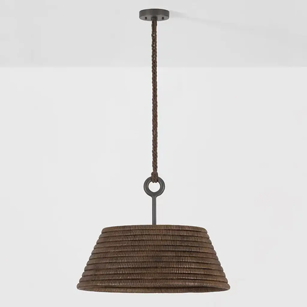 The Sequoia Pendant from Troy Lighting celebrates authentic artisanal craftsmanship with its meticulously woven natural rattan shade. Each strand interlaces with the next to create a basket-inspired form that filters light with a gentle, organic pattern. The nautical-inspired top loop anchors the piece visually while connecting to sturdy forged metalwork that ensures lasting stability. Light radiates through the natural fibers, creating gentle shadows and highlights on surrounding surfaces. This pendant works particularly well above dining tables, kitchen islands, or in sunrooms where its natural materials enhance relaxed, lived-in spaces.