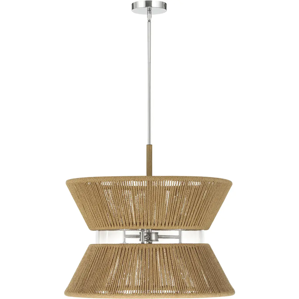 Embrace the timeless beauty of natural materials mixed with beautifully finished metals. Natural hemp rope wrapped frames combined with accentuated hourglass silhouettes create the Serena collection of pendants and sconce ideal for a variety of design and spaces.