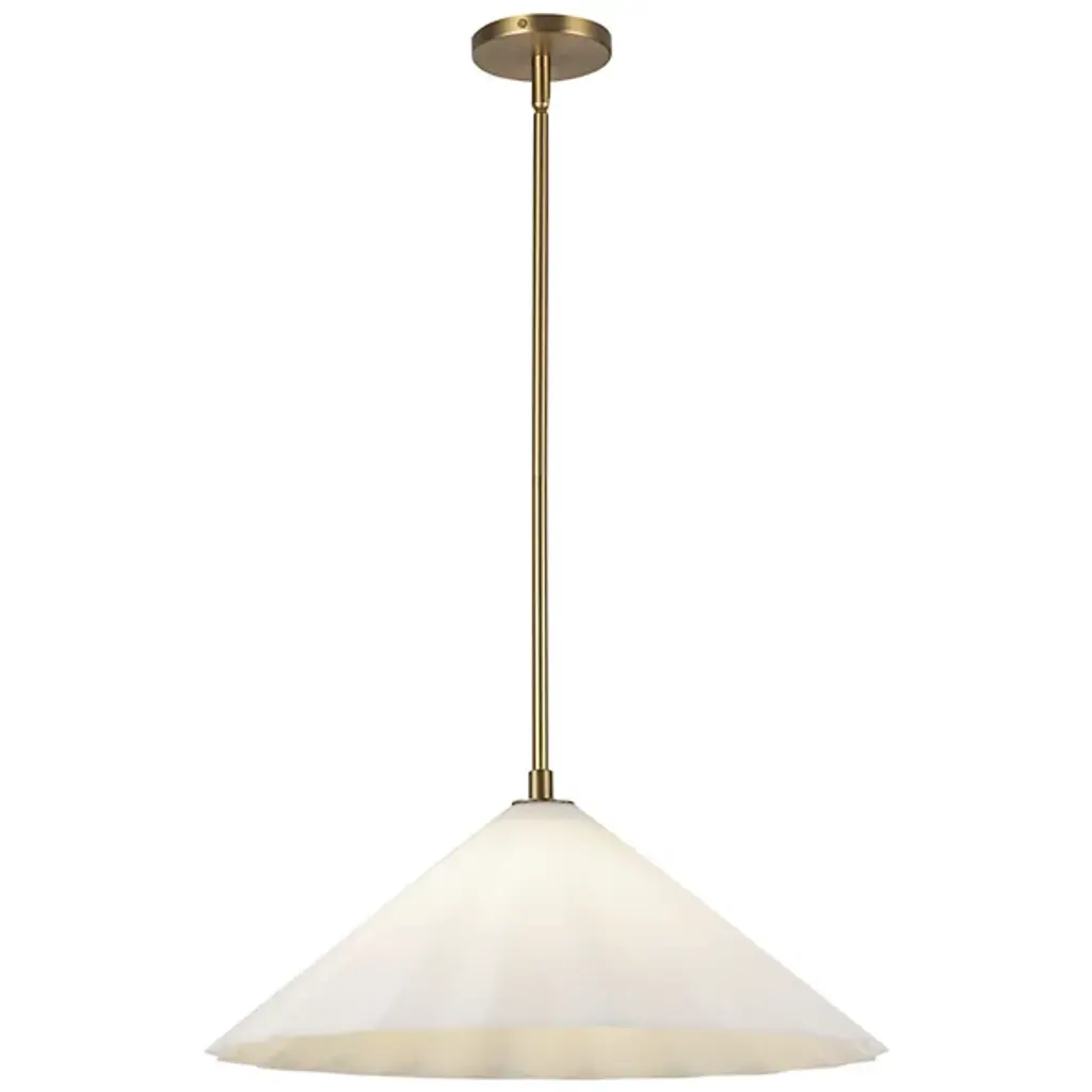 The Serena Pendant from Alora Mood is a sophisticated lighting solution that seamlessly blends timeless elegance with transitional functionality. Crafted with meticulousness, this pendant features a steel frame and an opal glass shade, creating a harmonious composition of materials that adds a touch of refinement to your space. The tapered shade design adds a subtle yet distinctive touch, contributing to the pendant's look. Illuminate your space with the opulent glow of an LED dimmable when used with a separately sold ELV dimmer.