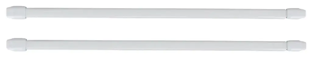 • ADJUSTABLE LENGTH : This set of 2 extendable white curtain rods are adjustable from 12-16 inches (30-40 cm) for holding your pretty valences and tiers. DO NOT USE with heavy curtains• SOLD BY PAIR : Install up to 2 sheers or valances on your window with this set of 2 net curtain rods and bring style to your kitchen or home decor • EASY TO INSTALL : Extendable flat sash rods are easy to install and are great for a shirred lace, sheer or lightweight net curtain. Can be mounted inside or outside of a window frame.• MULTIPLE SIZES : Available in 12-16 inches (30-40 cm), 16-24 inches (40-60 cm), 24-31 .8 inches (60-80 cm), 31.8-42.5 inches (80-110 cm), 42.5-55.8 inches (110 - 140 cm). Imported from France and made in PRC. Color white• CHOOSE YOUR HOOKS : Can be installed to wooden frame with L-shaped hooks (4 hooks supplied) or on PVC window frames with adhesive hooks (sold separately), in order to not damage your PVC frame Bring an extra flourish to your window voilages with these flat sash rods. This set of 2 extendable white curtain rods are adjustable from 12-16 inches (30-40 cm) for holding your pretty valances and tiers. Thanks to its two end holes, this kitchen rod can be fixed easily with square bend screws (4 screws included) or with self adhesive hooks (sold separately). Speedy extendable rods are ideal for light curtains, voiles and nets. Easy to install, it can be wall mounted or fixed to any recess. Features a versatile white finish to match a variety of home decor styles. Dimensions : Height 0.8 Inch by Width 0.6 Inch. Length available : 12-16 inches (30-40 cm), 16-24 inches (40-60 cm), 24-31.8 inches (60-80 cm), 31.8-42.5 inches (80-110 cm), 42.5-55.8 inches (110 - 140 cm). These aluminum sheet rods are imported from France and made in PRC. This net curtain rod can be installed to wooden or PVC window frames, we would always recommend for PVC that you purchase adhesive hooks, in order to not damage your PVC frame. The white telescoping sash rod set makes hanging lightweight and sheer drapery a breeze.