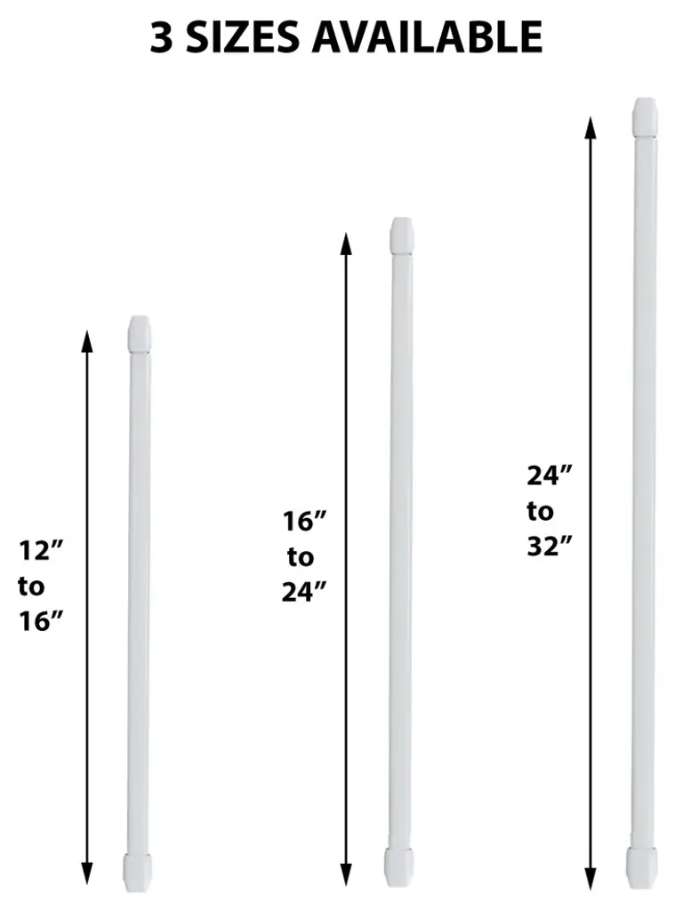 Set Of 2 Adjustable Flat Sash Rod, White, 12" To 16"