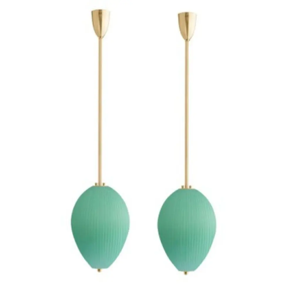 Pendant China 10 by Magic Circus Editions.Dimensions: H 90 x W 25.2 x D 25.2 cm, also available in H 110, 130, 150, 175, 190 cm.Materials: brass, mouth blown glass sculpted with a diamond saw.Colour: jade greenAvailable finishes: brass, nickel.Available colours: enamel soft white, soft rose, jade green, mustard yellow, rich grey, opal grey; For the tubes: black, red brickAll our lamps can be wired according to each country. If sold to the USA it will be wired for the USA for instance.Rethinking, reimagining, redesigning familiar objects that we look at every day without ever really seeing them and using light to tell stories, this how Marie-Lise Féry sees her work. Offering a new take on our urban heritage, changing our perspective through her work on scale and usage. Since 2015, Magic Circus Éditions has been setting the world of lighting ablaze, creating airy, playful and magical designs that merge retro with sleek and contemporary. A free-spirited antiquarian, founder Marie-Lise Féry draws inspiration from the world of cabarets and the magic of the circus to give shape to imaginative, fun and playful collections. The air of magic she breathes into her work reveals a wealth of interpretations and widens possibilities for creative interiors. The combination of traditional know-how — outstanding craftsmanship — and her imaginative take on historical, everyday objects lends an unexpected and charming quality to her creations.Féry’s lights are designed just like magic lanterns — precursor to modern-day cinema —, inspiring wonder through oversized, seemingly weightless compositions and understated references. Each collection has its own inspiration: the first models of street lighting for Collection 01; the happy memories of funfairs, sweets and balloons for her latest collection Balloon; the Far East for Collection 02; and the colourful, carefree spirit of the 1970s for Pop-Up, released in 2019. Magic Circus Éditions draws on airy designs, dream-like inspirations, colours and fun to create a sense of enchantment.Magic Circus Éditions founder Marie-Lise Féry was born in Paris. After studyingart business, she moved to New York to start her career. Fascinated by the city’s architecture, she found an endless source of inspiration in the Big Apple’s monumental decors. Returning to France to settle down in Lyon, she opened an antiques gallery named Un Château en Espagne, and started telling her own stories through objects she gleaned on markets all around the country. A way for her to perpetuate her mother’s motto: “Objects with a soul will always belong”. Since 2015, the year she established Magic Circus Éditions, she has moved on to lighting as a new medium for telling her stories, bringing the magic of the show into home interiors. With her love for the circus, turn-of-the-century cabarets and music halls, Marie-Lise Féry’s love of unusual objects has remained strong, but now prefers to focus her attention on pieces she has imagined herself. With a fun and light-spirited approach, she creates a bold visual effect that elicits instant attraction. She collaborates with some of Europe’s greatest artisans, from Prague and Murano to Clermont-Ferrand, working for instance with a Czech company specialising in sculpting glass using a diamond-blade saw, or an auto body shop renowned for their work with lacquers. The refinement of shapes and finishes, bespoke designs and technical excellence all contribute to creating pieces that inspire surprise and wonderment. In the manner of Wes Anderson in Grand Budapest Hotel, blending together elegance, humour and unexpected details, her designs never fail to surprise. Attentive to the effect of her designs both in daylight and at night, Marie-Lise Féry takes us on a journey through space (from outside to inside) and time (from yesterday to today).