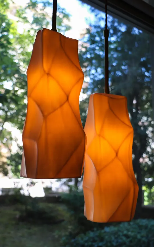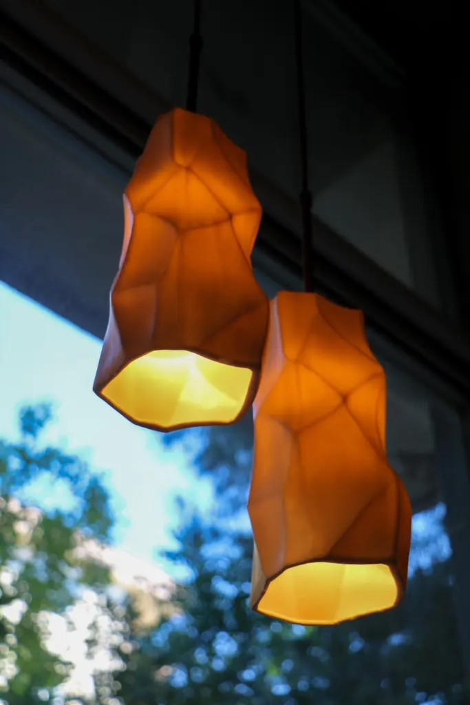 Set Of 2 Unique Porcelain Rock Pendant Lamp Ceren Gurkan