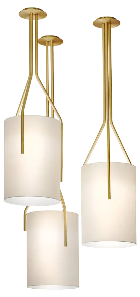Set of 3 Arborescence pendants by Hervé LanglaisDimensions: D 33 X H 100, D 33 x H 125, D 33 x H 150cmMaterials: solid brass, lampshade drop paper® M1, black textile cable (2m).Others finishes and dimensions are available.All our lamps can be wired according to each country. If sold to the USA it will be wired for the USA for instance.One of our most popular collections, Arborescence is a complete range in a variety of sizes and finishes. As a flexible concept, you can customize the light into a bespoke product.CVL Luminaires, a company located in the Loire Valley, has more than five decades of experience in the design and manufacture of luminaires.The company ensures 100% French manufacturing. On the one hand, it offers a range of modular and adaptable catalog products, and on the other, it has a know-how that allows it to carry out fully customized projects.Your asset: flexibility. The factory allows production from one unit to another. In addition, the CVL team supports you in product development: study, design, standardization and production.