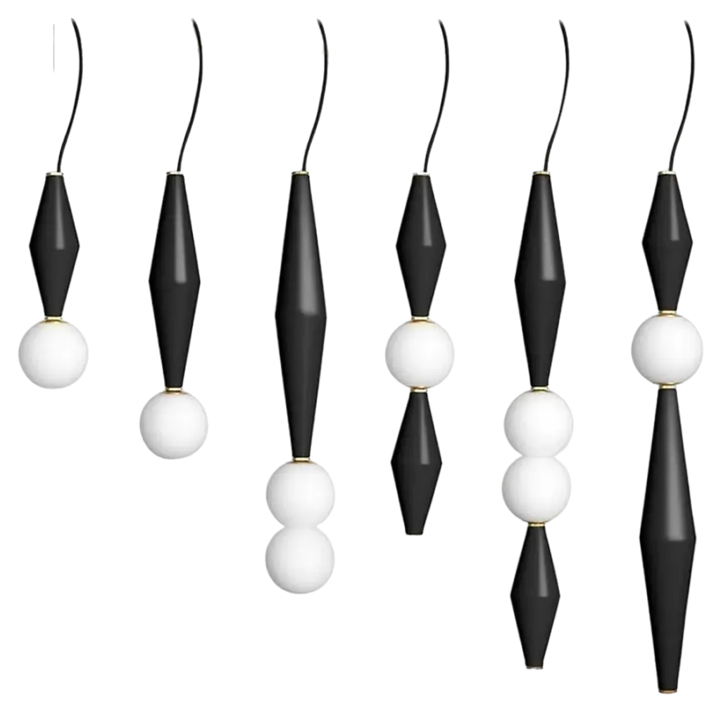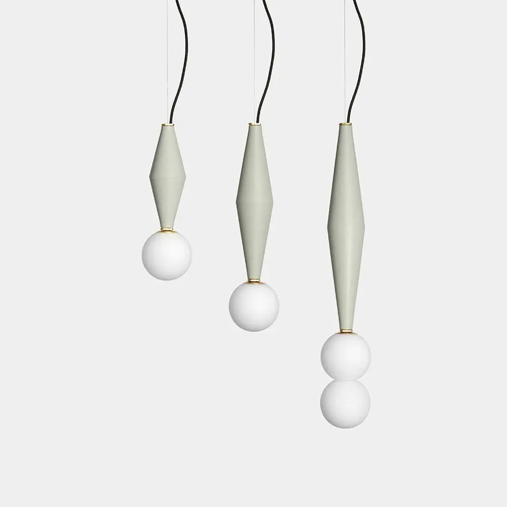 Set of 3 Gamma lamps by Mason EditionsDimensions for each: 12 × 12 × 37 cmMaterials: aluminium and blown opal white glassColours: pink, burgundy, light grey, sage green, petrol green, black.All our lamps can be wired according to each country.Gamma is the third letter of the Greek alphabet and also the third brightest star in the constellation.It’s in fact an alphabet of three aluminium elements, that creates a range of six modular suspensions. The frosted glass sphere contains the luminous soul which, combined in different ways with the metal elements, gives life to new solutions that look like constellations. Suspended ceiling lamp with a modern and vibrant silhouette. Display in multiples to create striking lighting compositions. Available in pink, burgundy, sage green, petrol green, light grey, black and several colour combinations.Mason Editions is an Italian company specialized in the production of design furniture, lighting solutions and accent pieces. Born from the lifelong passion for lighting and entrepreneurial spirit of Fabio and his partner Silvia, Mason Editions places itself halfway between fine art and exquisite craftsmanship. A collection of lighting, design objects and furnishing accessories, signed by artists Serena Confalonieri, Martina Bartoli and Matteo Fiorini, head of the creative direction. Mason Editions comes from the experience of an Italian lighting company placed in the Veneto region. This new brand of furniture elements was born from the meeting between the entrepreneur Fabio Mason and three international designers who designed the first collection for a sophisticated public. Therefore the collection wants to be eclectic and timeless.The material contrast and fresh design, with essential shapes, mark the mason editions collection.In conclusion, the elegant Italian sign highlights proposals suitable for all environments.Mason editions is a set of experiences, artisans, and productive know-how that creates a capable system.