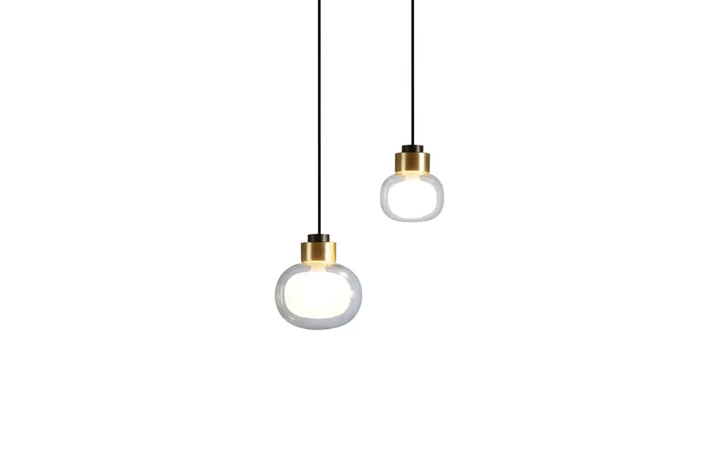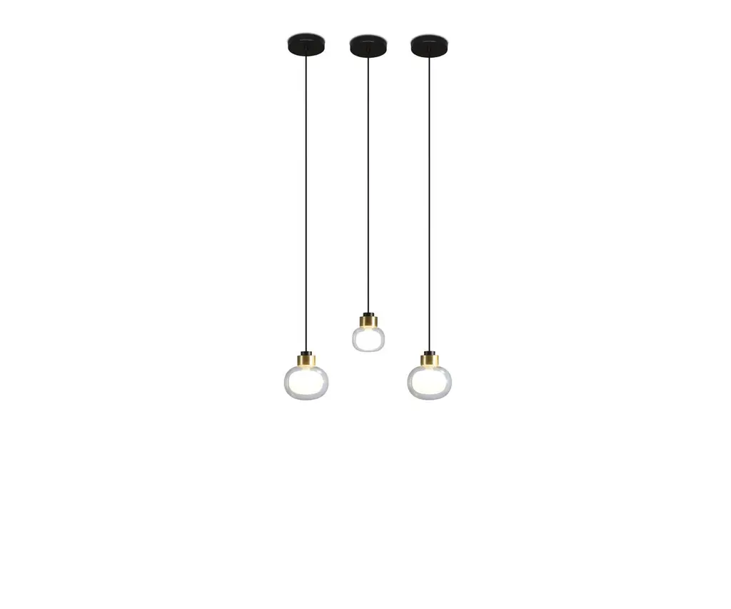 3 pendant lamps Nabila 552.21 by Corrado Dotti x TOOYUL Listed Model shown:Finish: Brushed brassColor: Clear glassCanopy: Ø 13 cmBulb compliance : G9 220/240V 3W Compliant with USA electric systemcable length 150 cm50s inspired collection of elegant and sophisticated lamps representing the detail to enrich any location. A double-sided spherical bright object in borosilicate glass makes these lamps available in different compositions and a structure made by metal coated with epoxy powder enriched with brushed brass or black chrome details. Different varieties are available for any situation: chandeliers (in five different models) or table lamp, bedside (smaller), floor or wall (available in three different models for single or composite personalized installation). Richness and sobriety all in one single element.A light to give warmth, a light to give attention, a light to get lost in one’s thoughts. Each reflection, a state of mind. Fascinated by the infinite facets of light, the TOOY brand offers lighting that gives value to the experience of living in spaces through a wide and versatile range of products capable of telling a story.