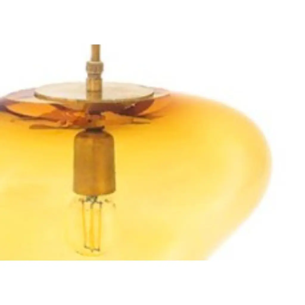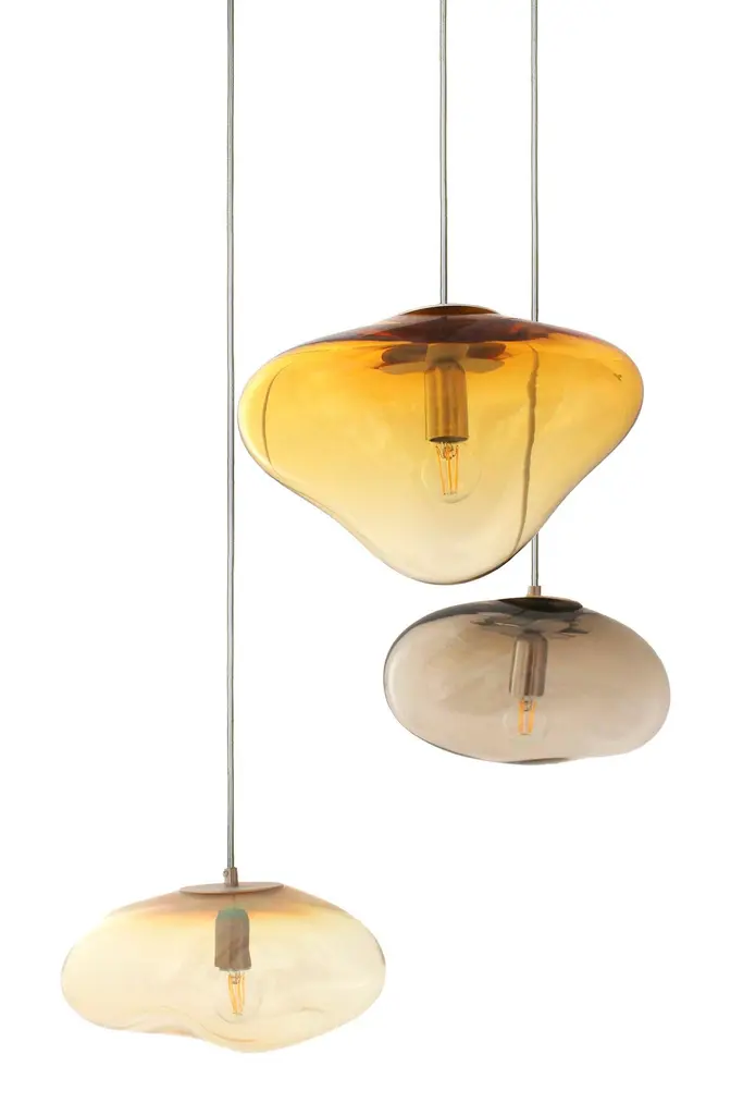 Set of 3 planetoide seresi gold pendants by Eloa.No UL listed Material: glass, steel, silver, LED bulbDimensions: D30 x W30 x H250 cmAlso available in different colours and dimensions.Canopy (D 35cm) available in brushed chrome steel, gold finish, brushed brass, and black.All our lamps can be wired according to each country. If sold to the USA it will be wired for the USA for instance.Planetoids are small asymmetrical objects that float delicately in space. Combine their various forms and colors to custom design the celestial ambience of your room. Planetoids are available as individuals or in trios, quartets, quintets, etc for creating infinite variations of your own, personal constellations.Light objects float weightlessly in space. Fragile, iridescent, timeless. ELOA is amodular lighting system composed of unique handcrafted glass pieces. Select from a variety of hand-blown forms, which are one of a kindin shape, size andcolor - unique.Solitary or in constellation, the ELOA lights create individual light concepts andassociate with star constellations. Each glass piece is named after a star or a planet.They exist as hanging, floor, standing and wall luminaries.ELOA combines the craft of ancient glassblowing with a simple, yet distinct design.In order to achieve the large size of the glass objects and working without forms, it takes a high level of refined craftsmanship and skill performed by only a few master glassblowers.