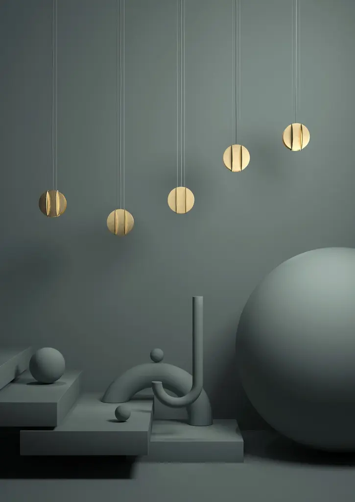 Set Of Three Contemporary Pendant Lamps El Lamps Small Cs1 By Noom In Brass