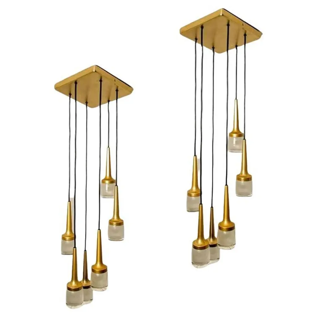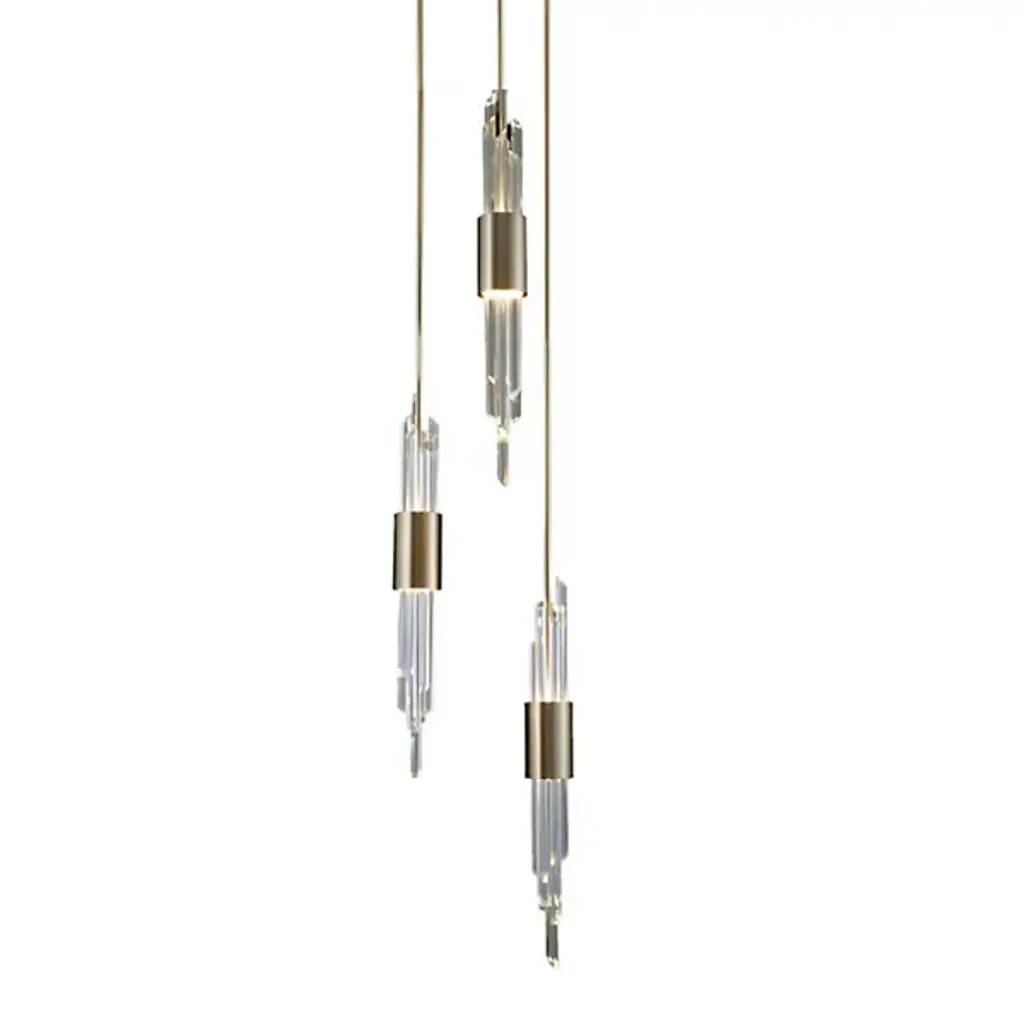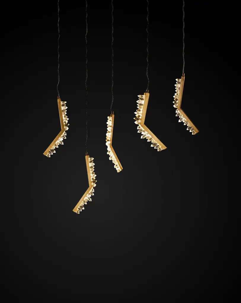 Set of white quartz pendant lamps by AverDimensions: 20 x 4 x 60 cmLighting: One LED 7 Wats / 450 LumensFinish: Silver leaf, old silver leaf, gold leaf, old gold leaf, copper leaf, rusty, pink golf and brass.Rock crystal: White quartz.