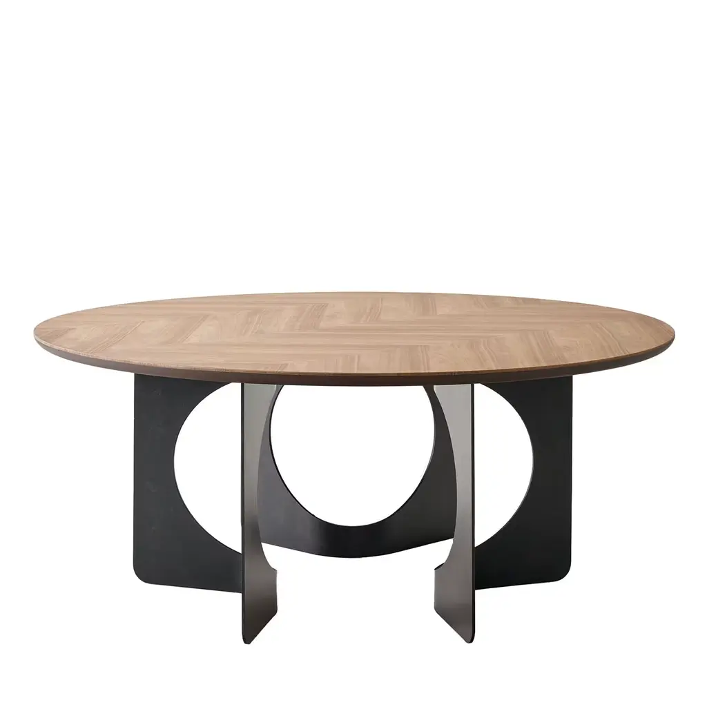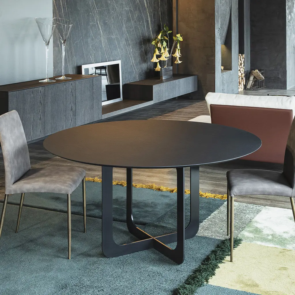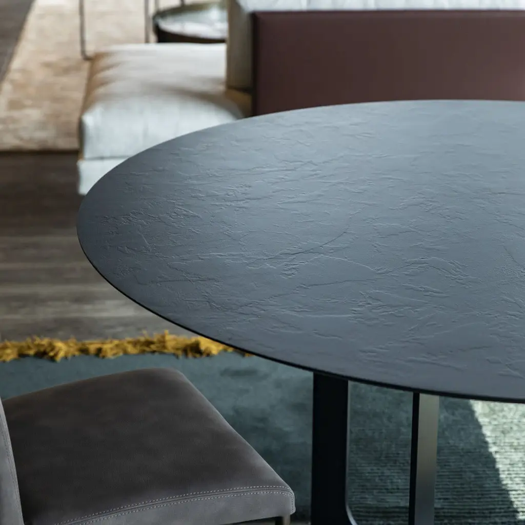 Settanta Round Dining Table With Dark Brown Spatulated Resin Top