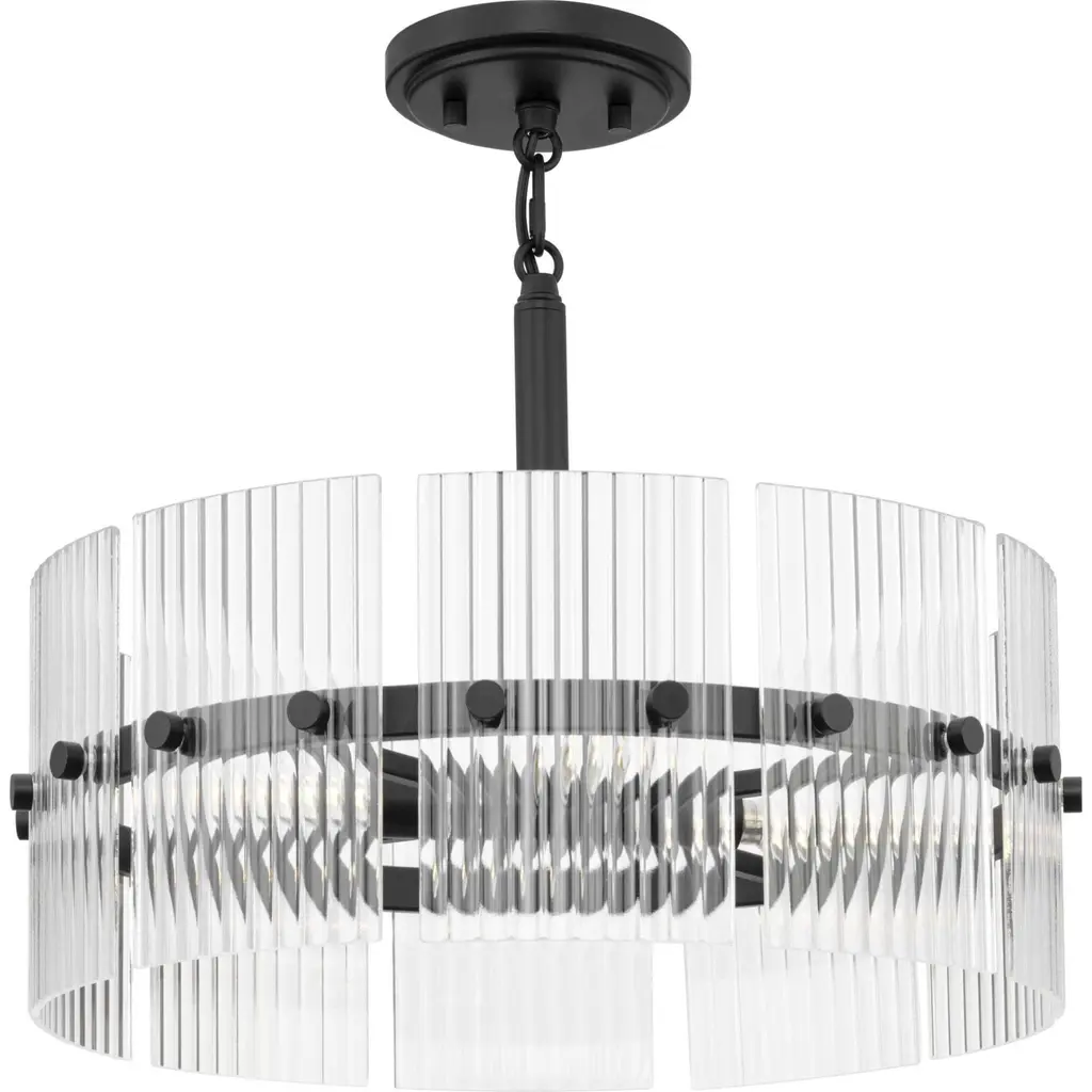The Seville Collection ensconces light within a translucent design. A series of finely ridged architectural glass elements envelop a central frame finished in Matte Black to diffuse an ambient glow throughout the room.This fixture is part of the Progress Lighting Design Series, a lighting collection offering fashionable styles and luxury lighting for the home.