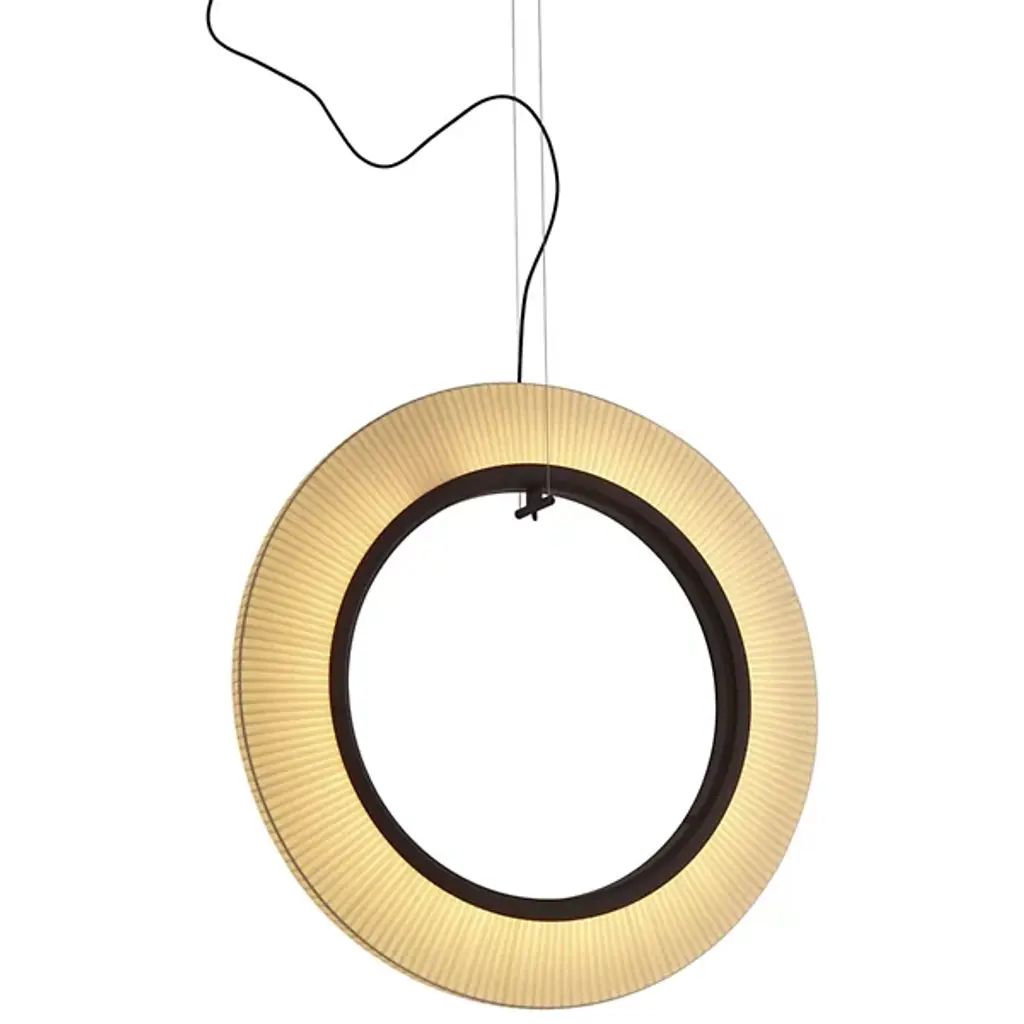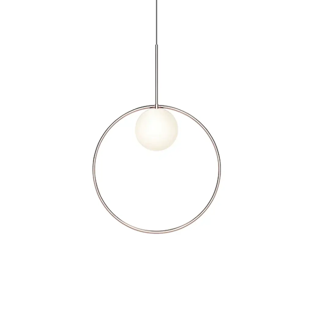 Enliven your interior living spaces with the sleek, open lines of the Sfera Pendant from Accord Lighting. A simple structure at heart, it uses a sleek hoop frame descending from a single slender cable to suspend a lamp diagonally-offset from the hoop’s interior base to provide illumination. The lamping is surrounded by a translucent spherical diffuser cupped by a smooth metal dish housing that adds a sense of sculptural dynamism while gentling direct glare into a warm ambiance that sparkles off the structure’s smooth surfaces.