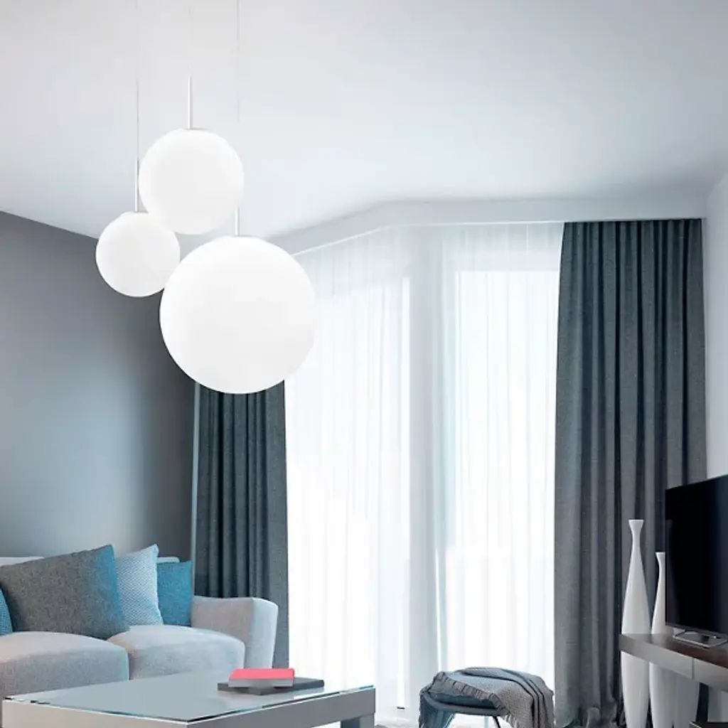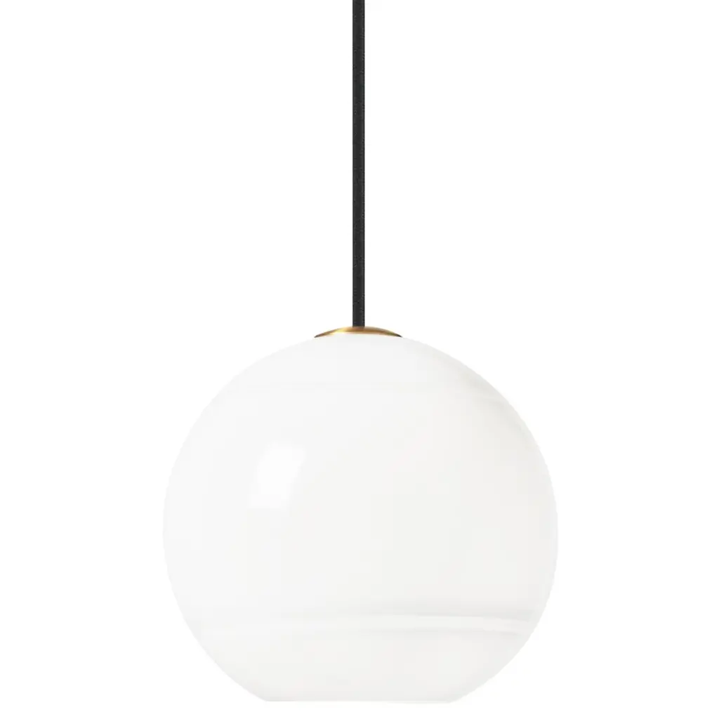 The Sferis Pendant Light by Ai Lati and from Zafferano America is a timeless and Italian made display of artisanal work. A Triplex Opal Satin Blown Glass sphere, a special composition of a thin white layer within two clear layers of Glass, creates an incomparable and beautiful layer of diffused light. With a smooth metal stem capping the top of the globe, this seamless and streamlined silhouette is simply suspended. Adding a luminous layer of light to surroundings, this handcrafted design is an elevated and everyday pendant light for the home.