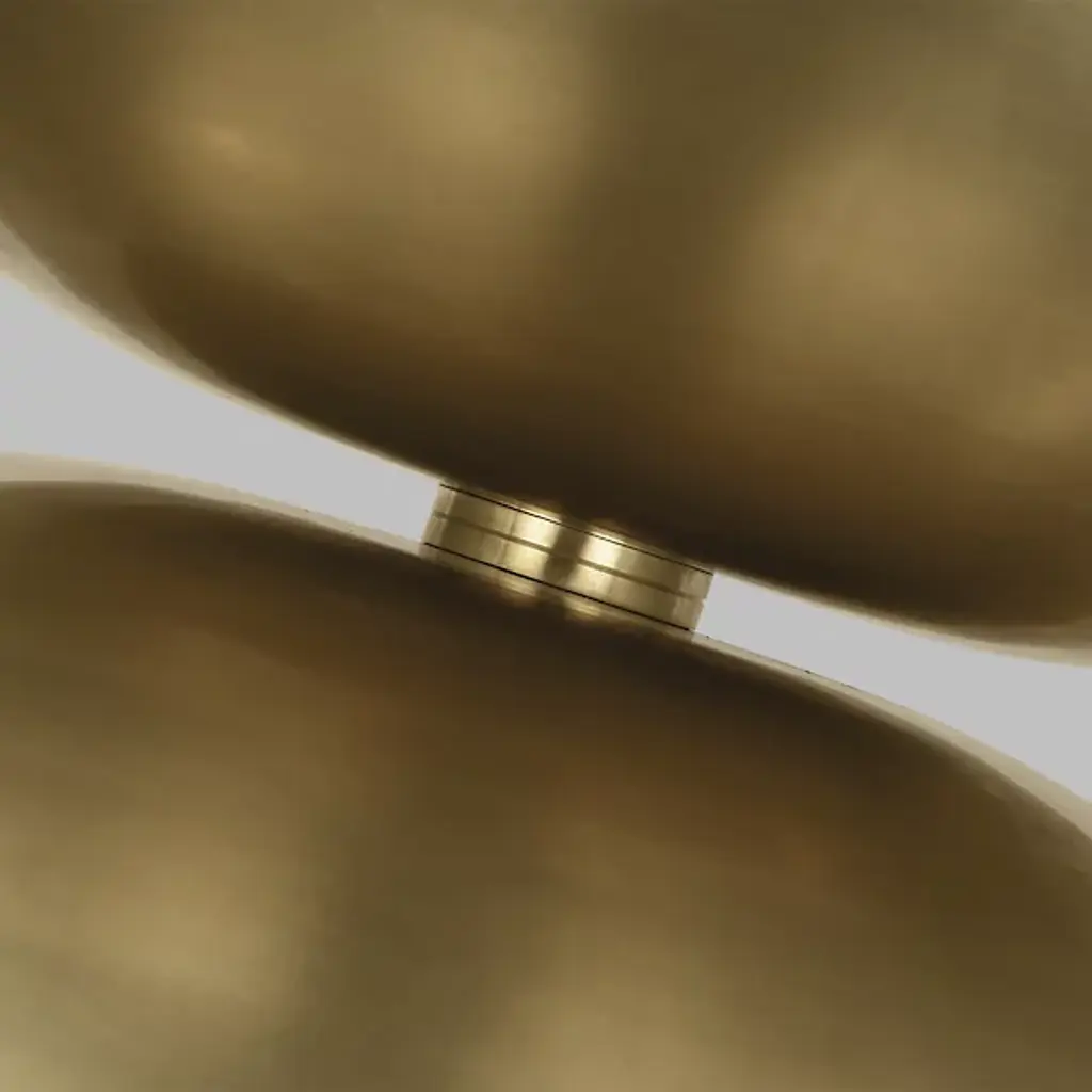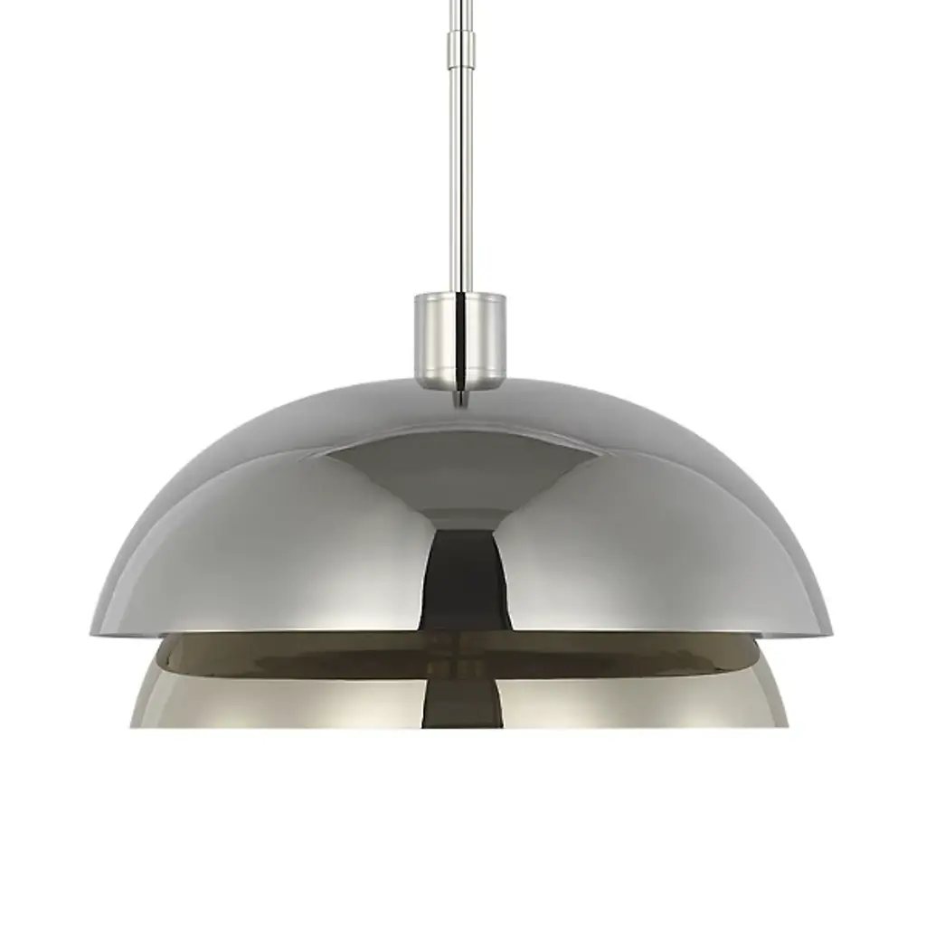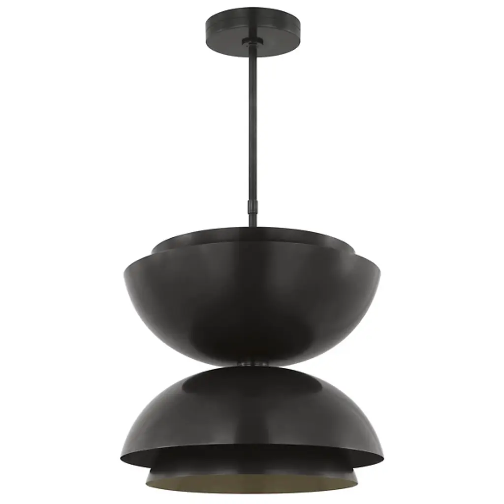 The Shanti LED Double Pendant from Visual Comfort Modern is designed by Sean Lavin. This double pendant is a statement-making piece that will set the for your living space. Hanging from the end of a simple stem is a set of large, spun metal-shaped shades. Multi-directional bulbs glaze the structure while creating a warm, radiant glow. Integrated LED modules bring the metal to life as they emit a bright and even layer of light through the top and bottom of the piece.