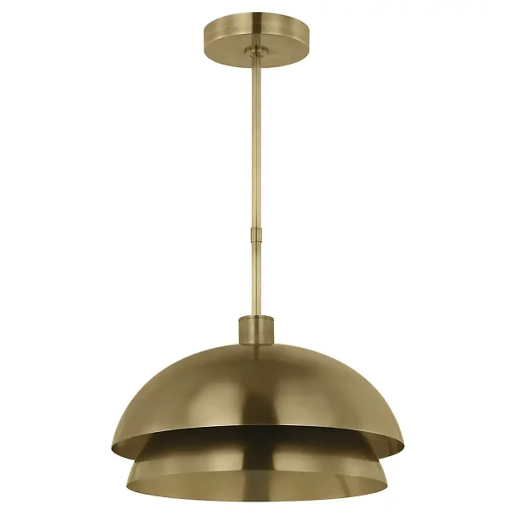 Presented by Visual Comfort Modern, the Shanti LED Pendant by Sean Lavin is a statement-making piece that presents a fresh visual you can indulge in from any angle you look at it. Hanging from the end of a simple stem is a set of large spun metal-shaped shades. Light sends the piece to another level as the multi-directional bulbs glaze the structure while creating a warm, radiant glow. Integrated LED modules bring the metal to life as they emit a bright and even layer of light through the top and bottom of the piece.