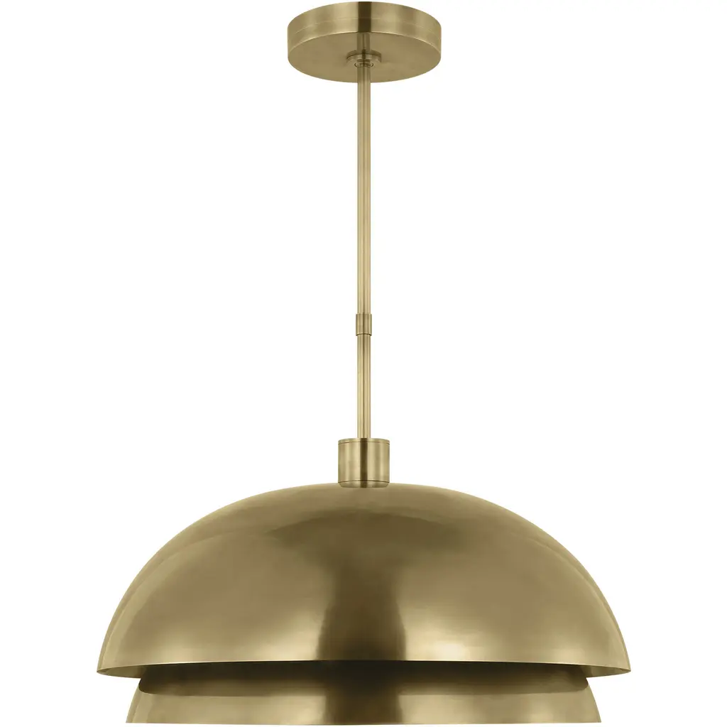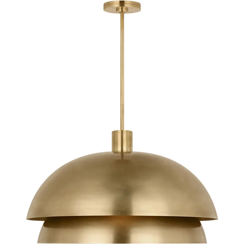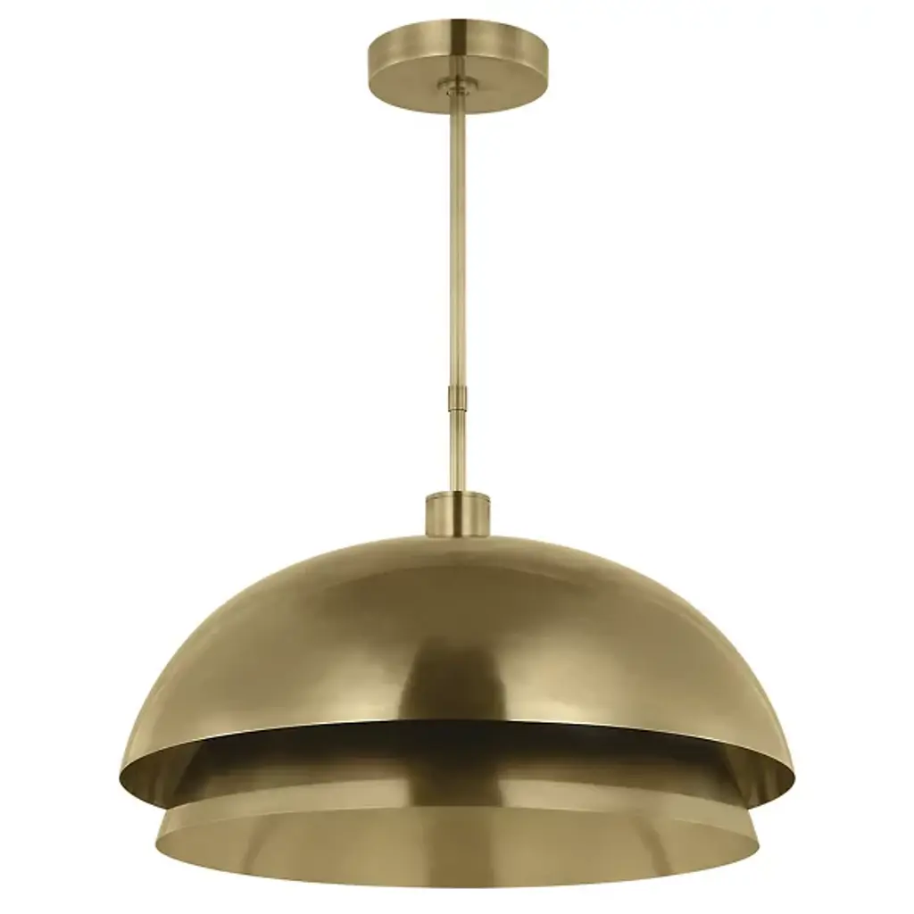 Presented by Visual Comfort Modern, the Shanti LED Pendant by Sean Lavin is a statement-making piece that presents a fresh visual you can indulge in from any angle you look at it. Hanging from the end of a simple stem is a set of large spun metal-shaped shades. Light sends the piece to another level as the multi-directional bulbs glaze the structure while creating a warm, radiant glow. Integrated LED modules bring the metal to life as they emit a bright and even layer of light through the top and bottom of the piece.